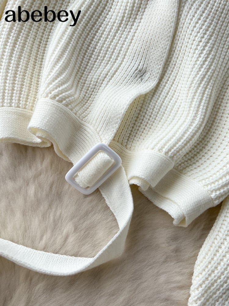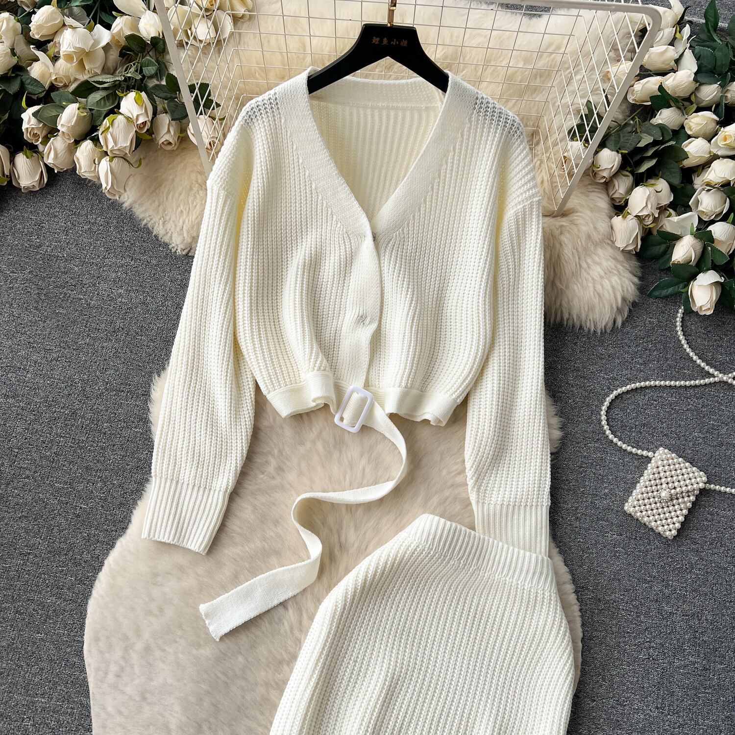 ボタン冬セータースーツショートプルオーバー + ロングスカートアメリカンレトロ厚手ニット 2 枚セット ウィンター 冬物