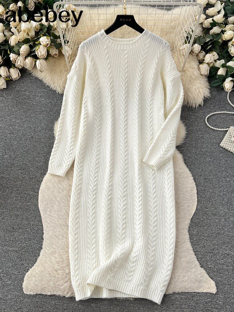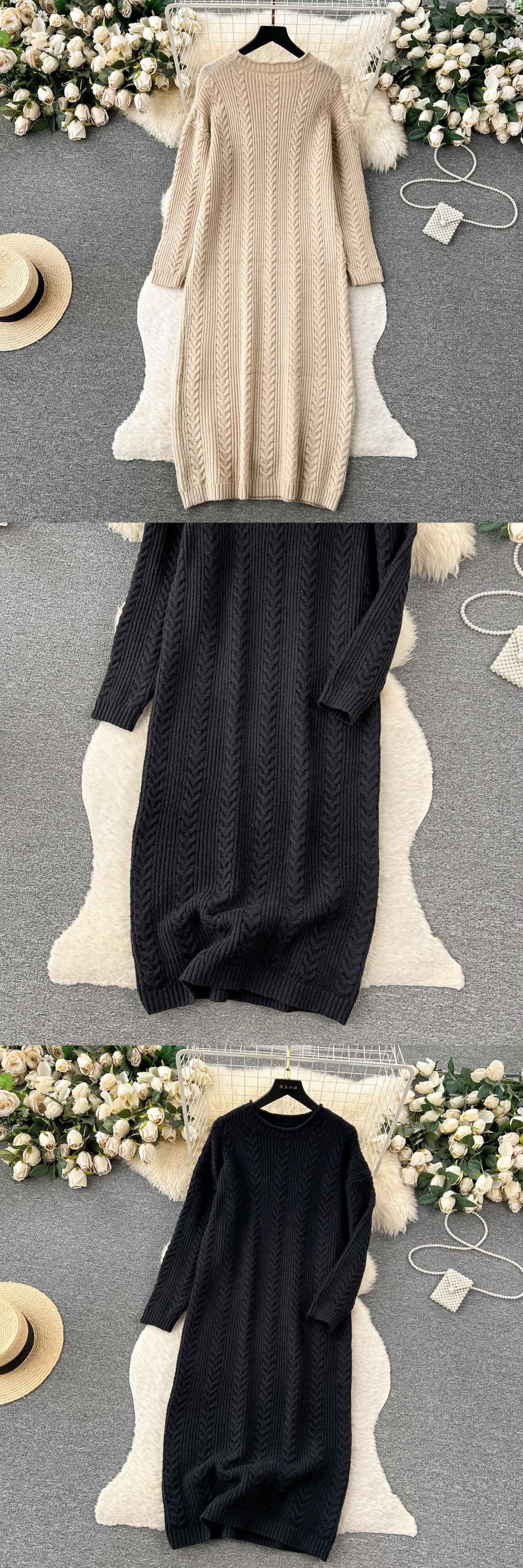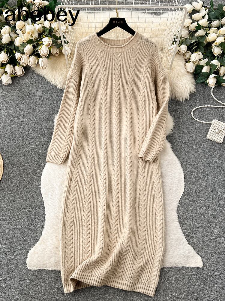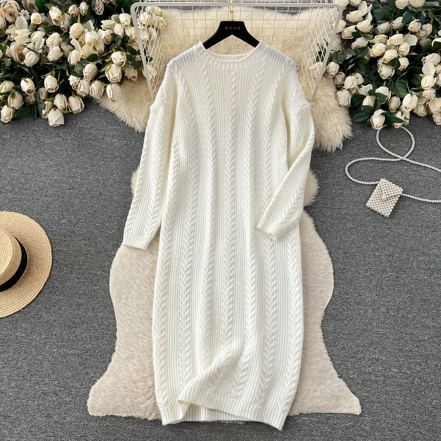 ルーズセータードレス暖かいオフィスレディ O ネックフルスリーブストリート秋ニットロングドレス オータム 秋物 Oネック 会社 学校 通勤や通学にも