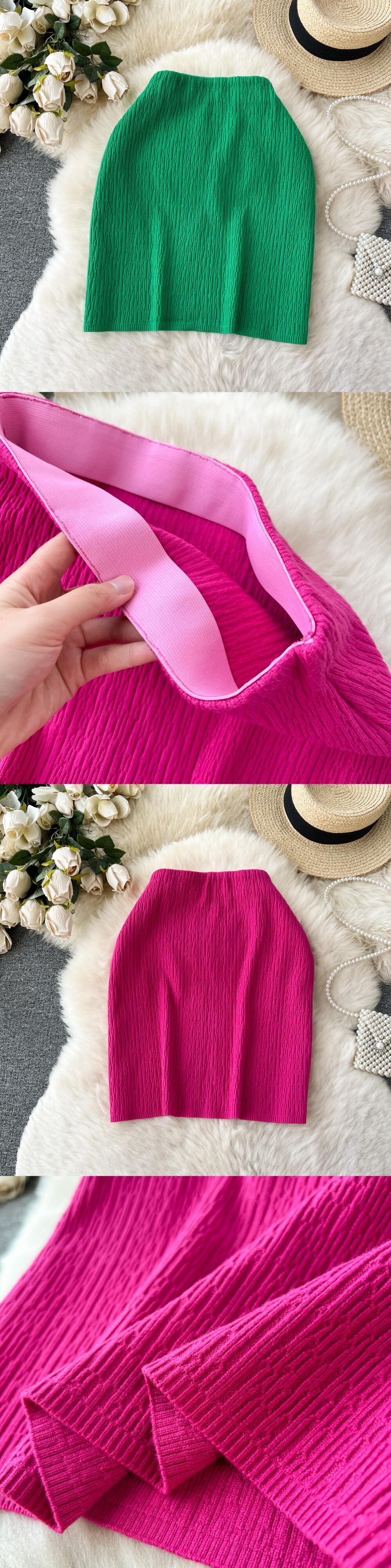 冬暖かいニットプリーツショートスカート弾性ウエストセータースカート秋弾性ニットリブミニスカート エラスティック 伸縮 オータム 秋物 ウィンター 冬物 ソリッドカラー