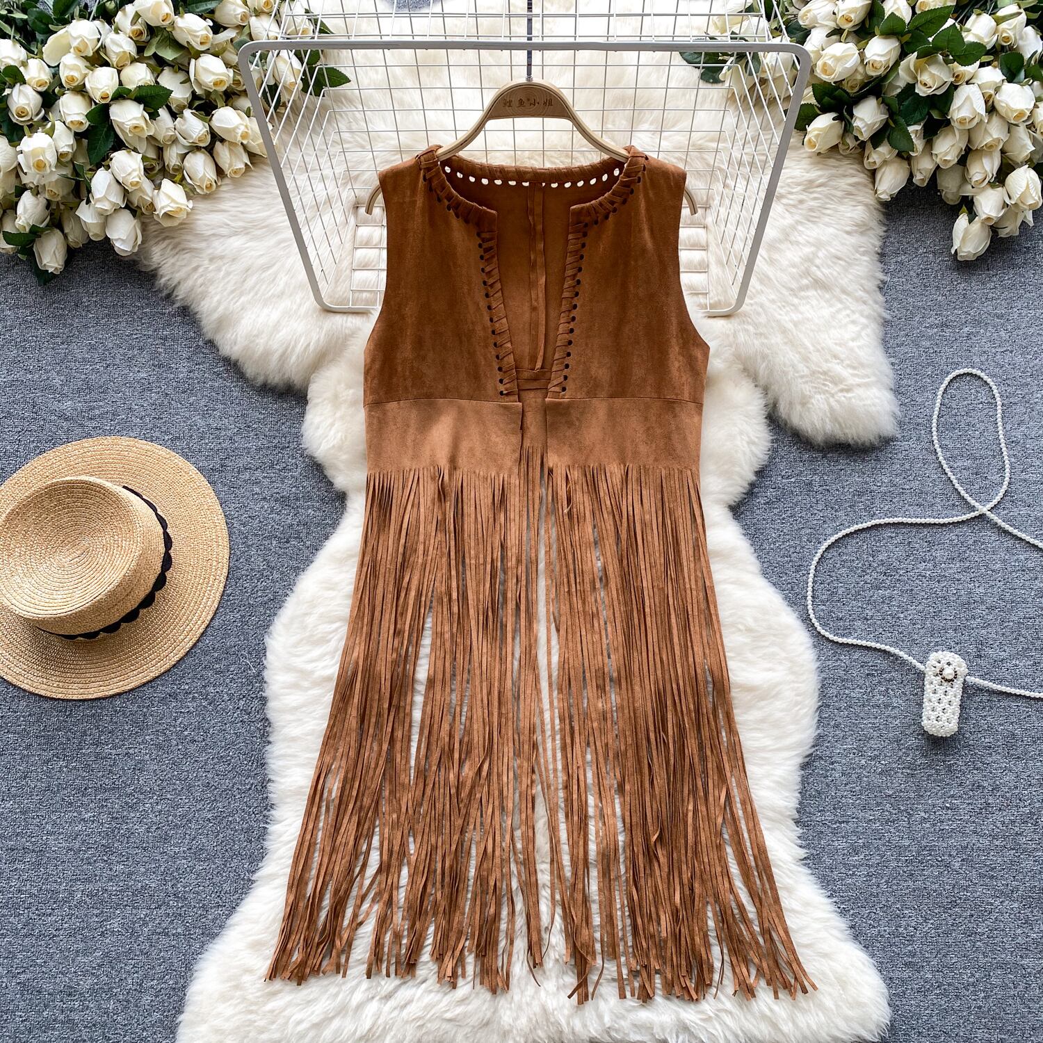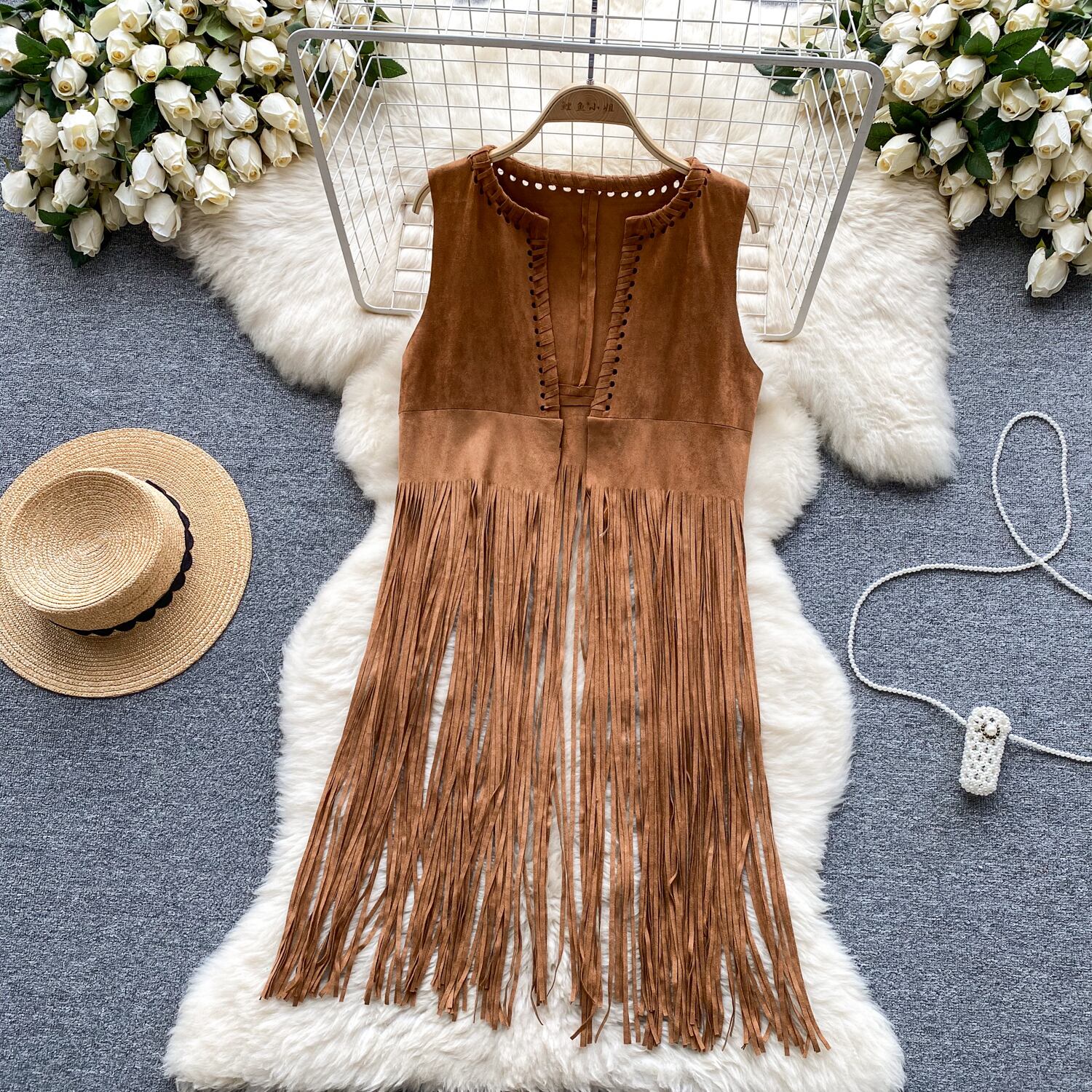 スエードカーディガンチョッキフリンジケープノースリーブテルショールベストジャケットアウターヒッピー服 スウェード