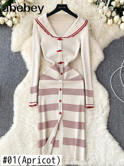 秋ニットシックドレス v ネック中空アウト長袖弓装飾スリムフィットボディコンパーティードレス ロング リボン オータム 秋物 Vネック ソリッドカラー