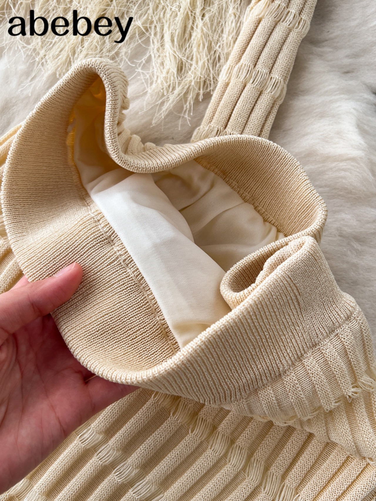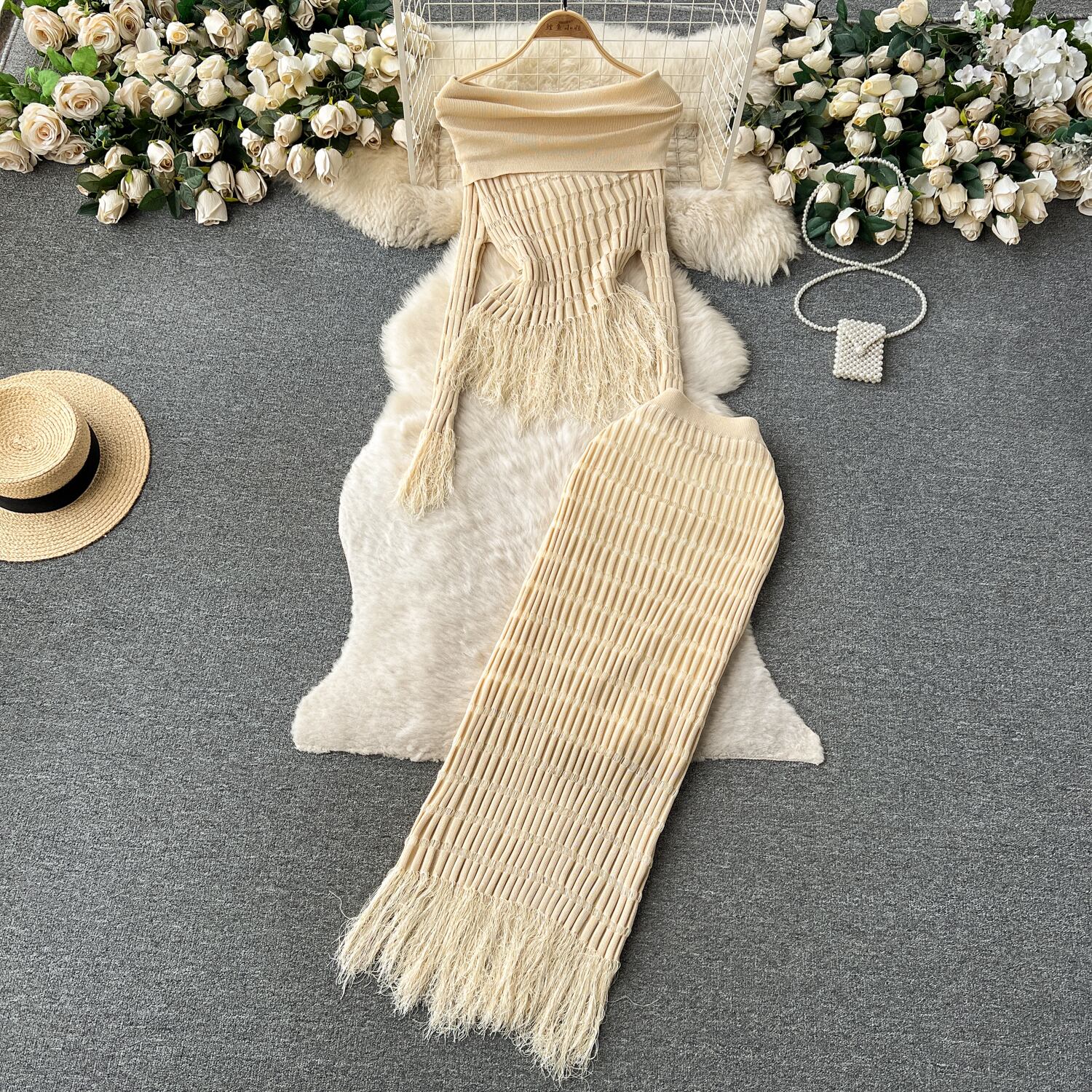 シニア Tel ニットスーツオフショルダースリムフィットトップス + 中空アウトボディコンスカートフランスシック秋ストリートセット オータム 秋物