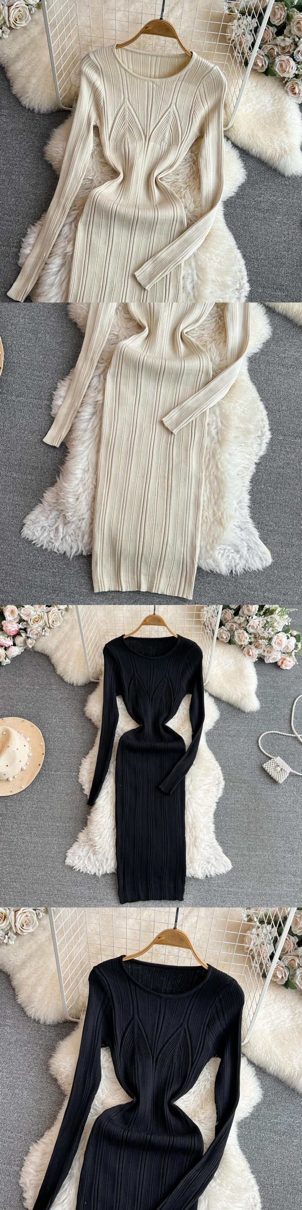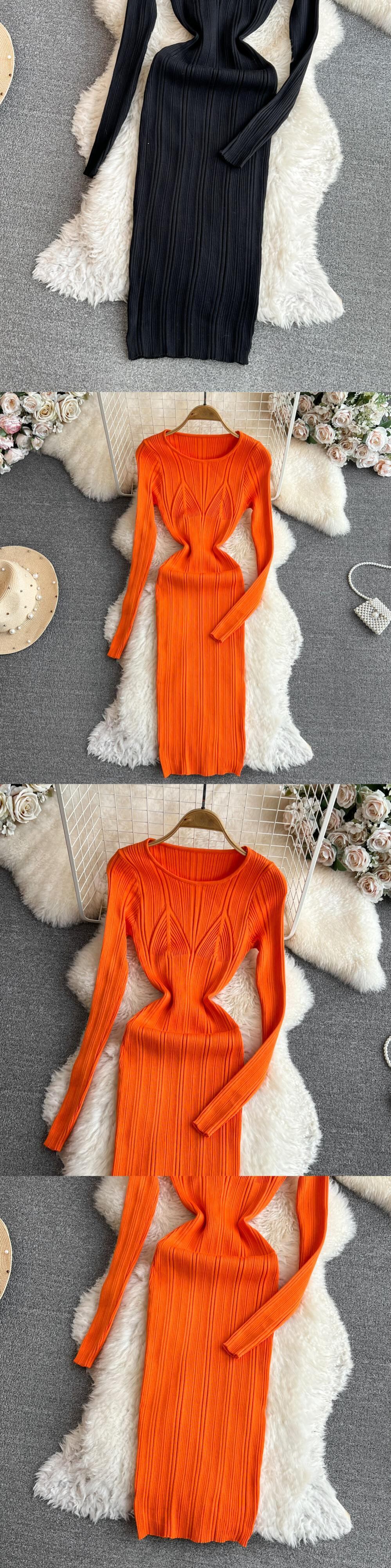 長袖ニットドレスパーティーローブ秋レトロ V ネックボディコンドレススリムウエスト Vestido ロング オータム 秋物 Vネック