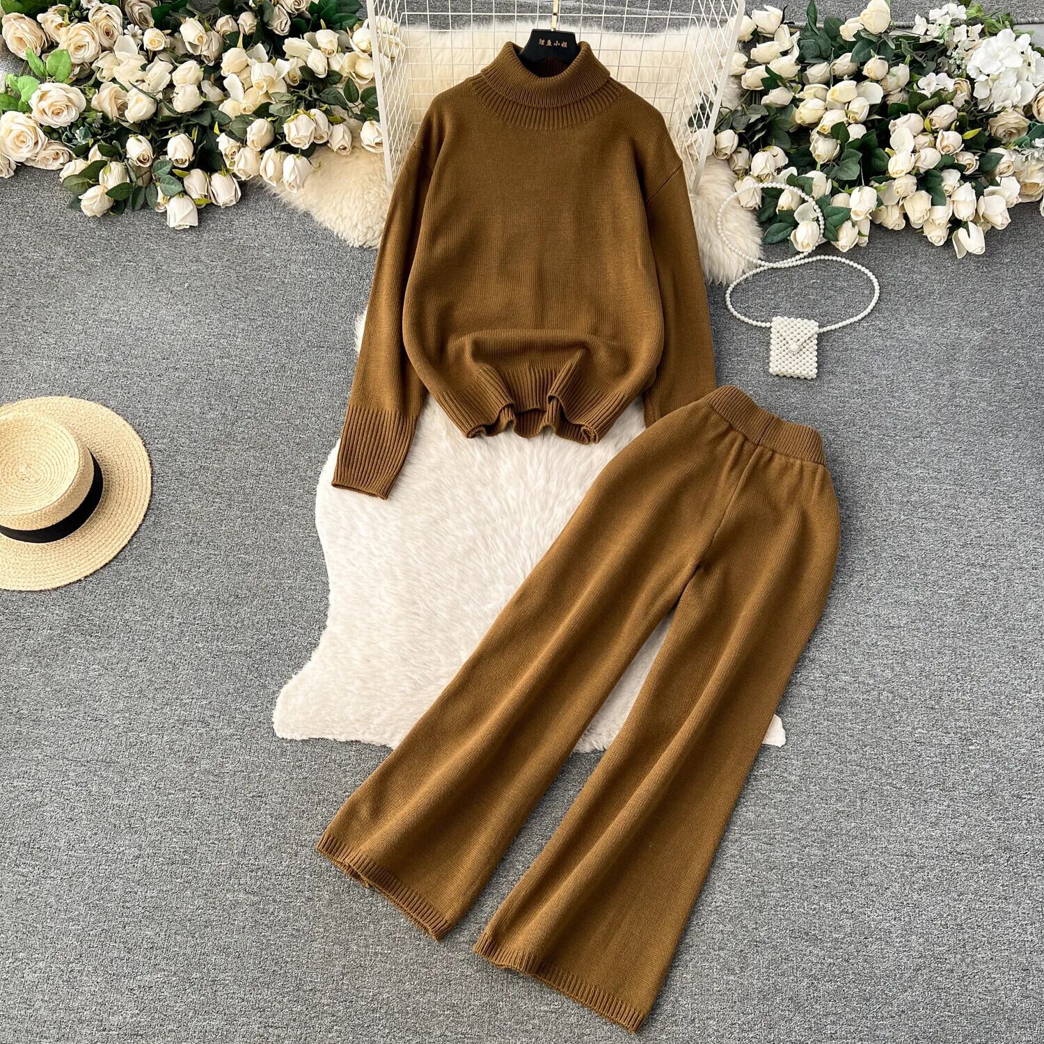ソリッドカラープルオーバーセーターセットルーズニットストレートパンツスーツ秋冬オフィスレディ衣装 オータム 秋物 ウィンター 冬物 会社 学校 通勤や通学にも