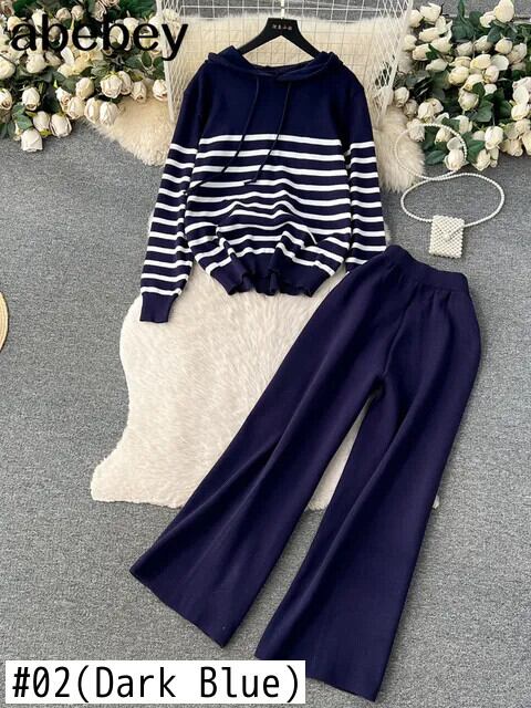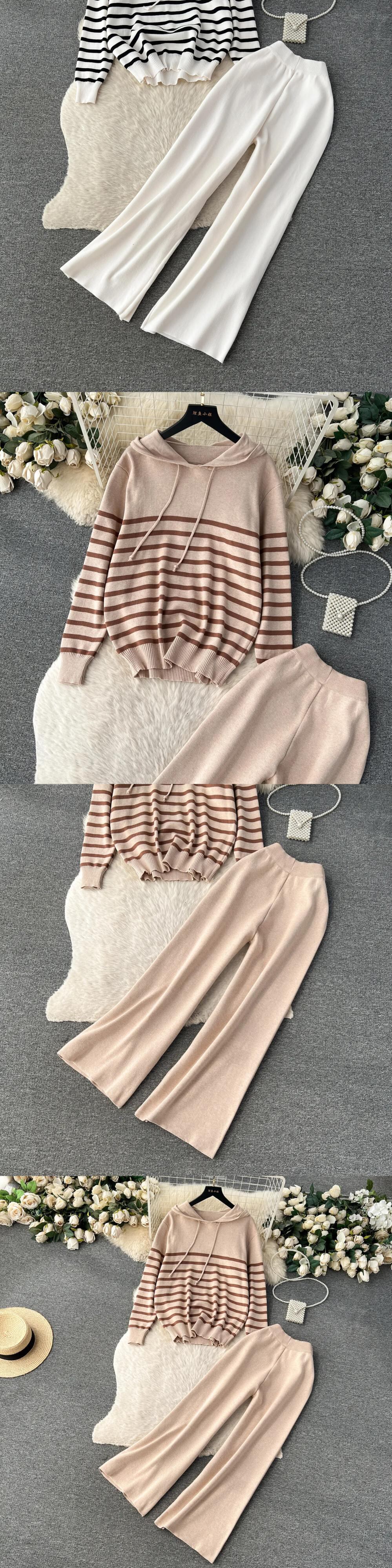 冬セーターパンツセットスポーティフード付きプルオーバー + 弾性ワイドレッグパンツホームセット秋 エラスティック 伸縮 ウィンター 冬物 ワイドパンツ ソリッドカラー