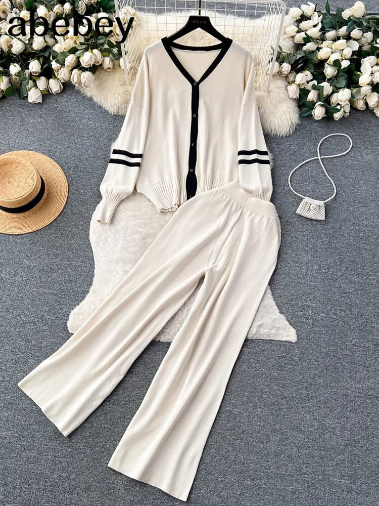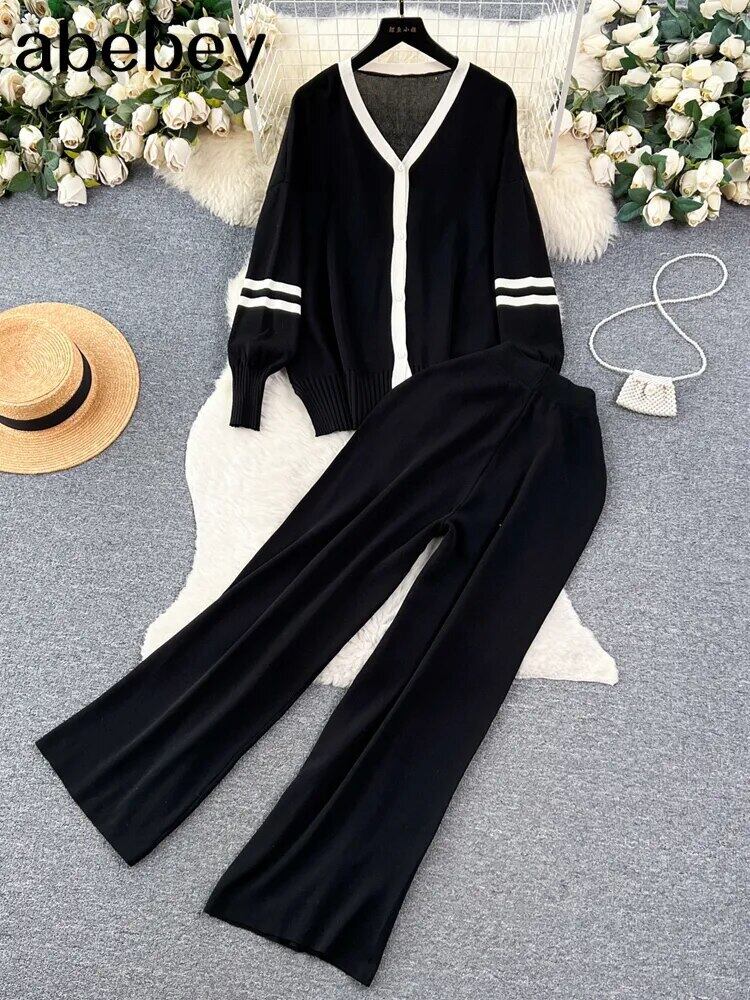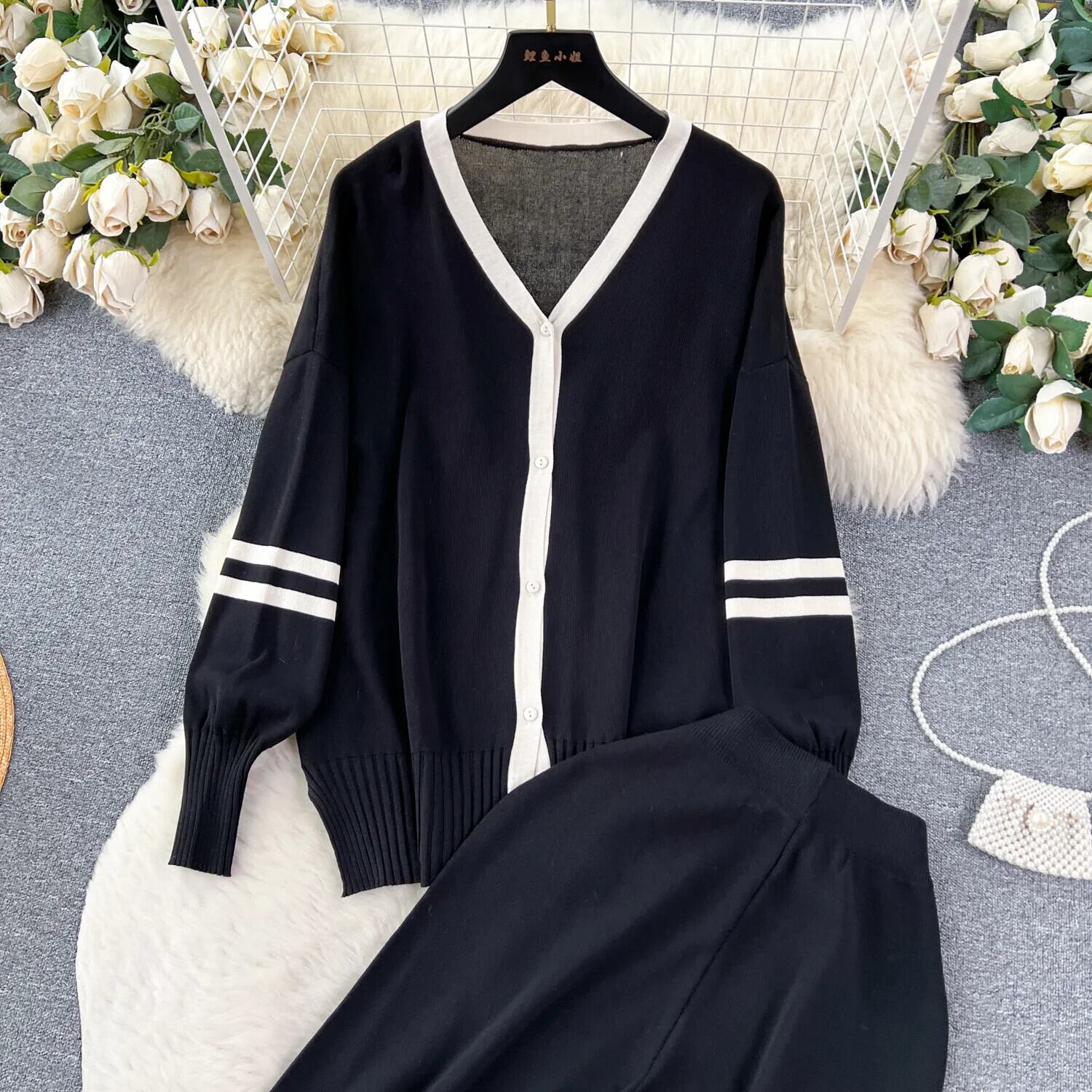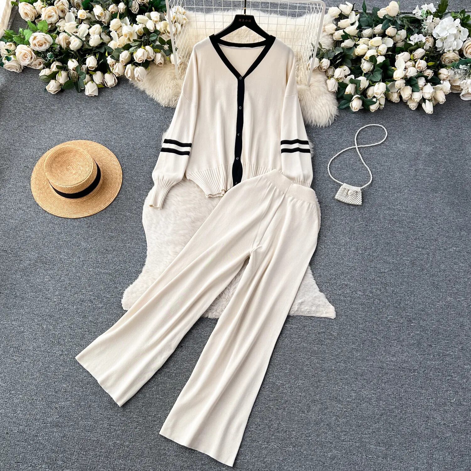 冬ホームセーターセットルーズロングプルオーバー+弾性ロングパンツニットツーピーススーツ エラスティック 伸縮 ウィンター 冬物