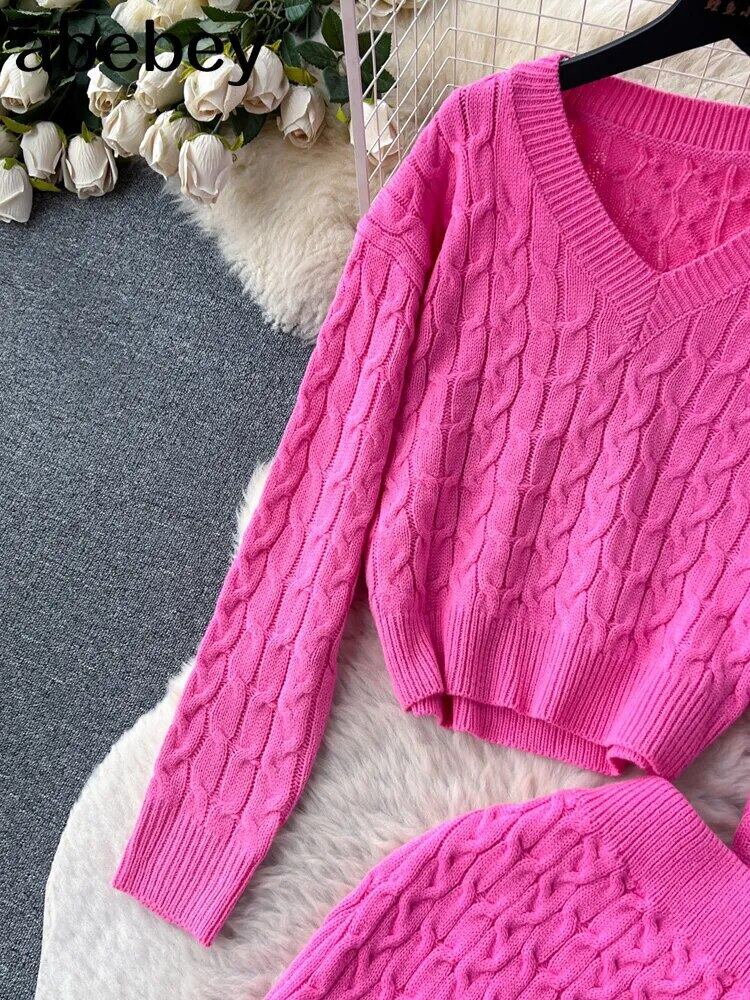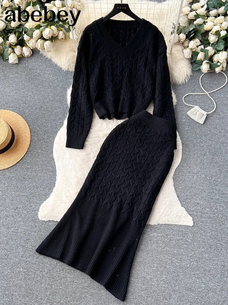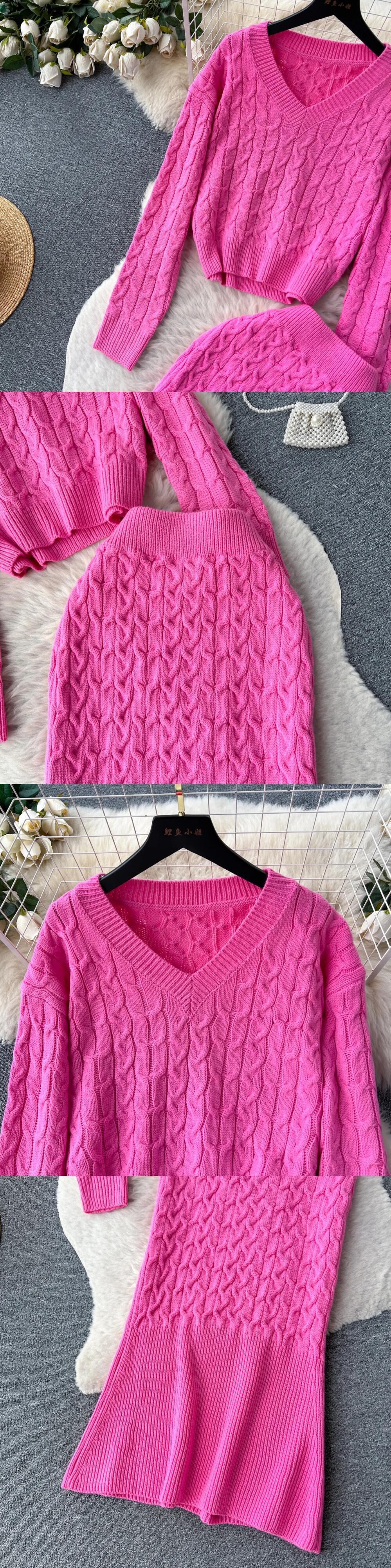 秋ニットツーピーススーツスタイルルーズプルオーバー+ロングニットスカート暖かいセーターセット オータム 秋物