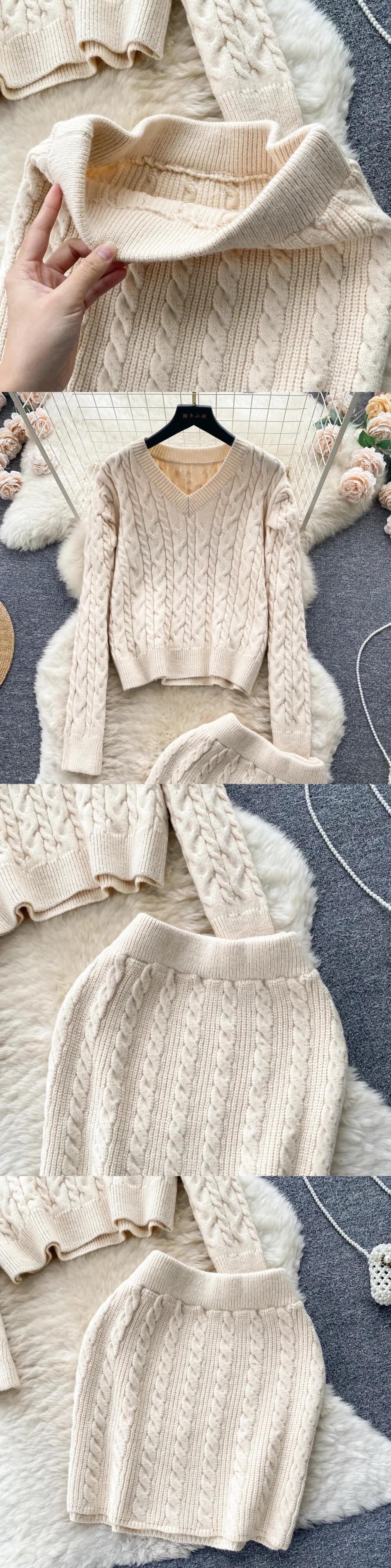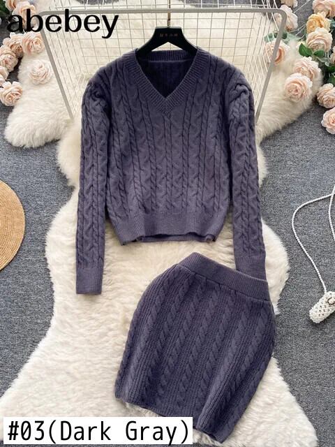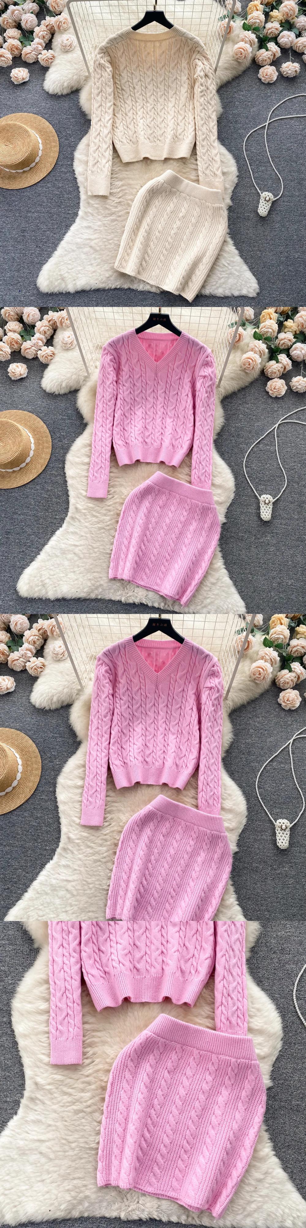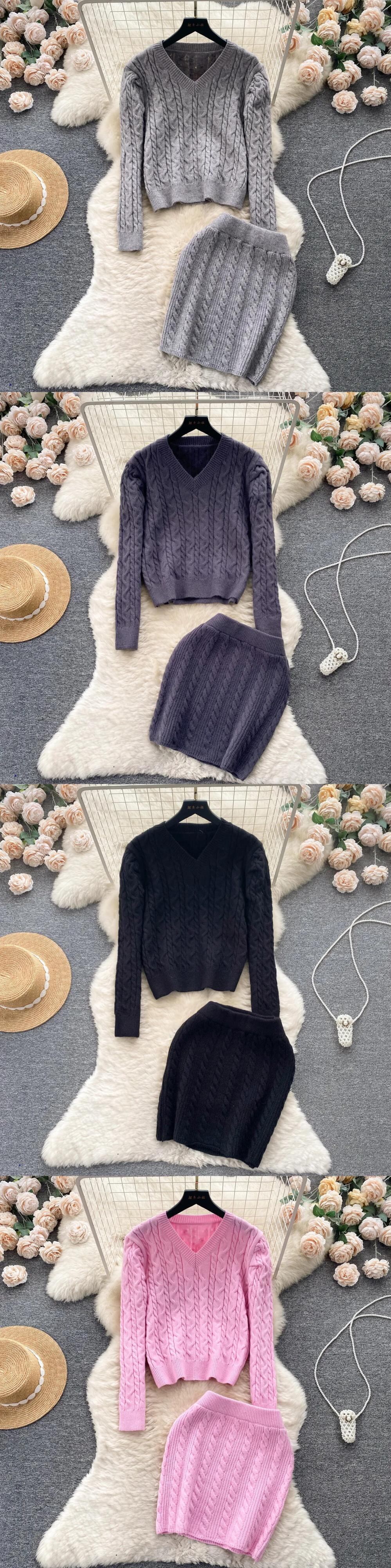 秋ニットツーピーススーツスタイルルーズプルオーバー+ミニニットスカート暖かいセーターセット オータム 秋物