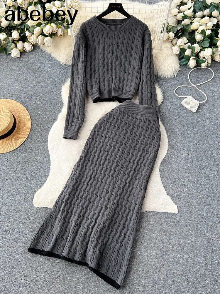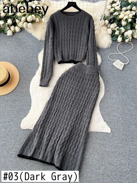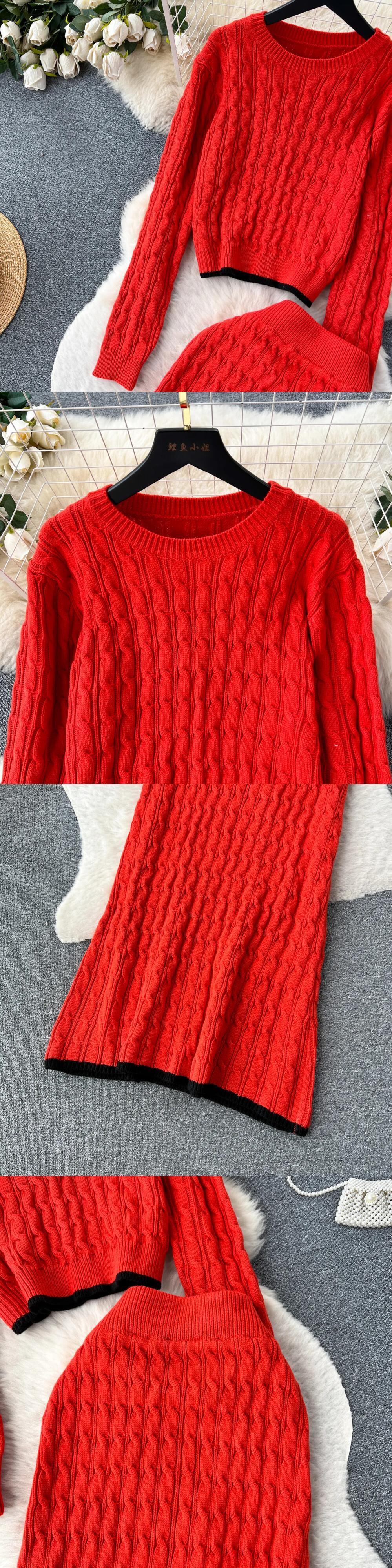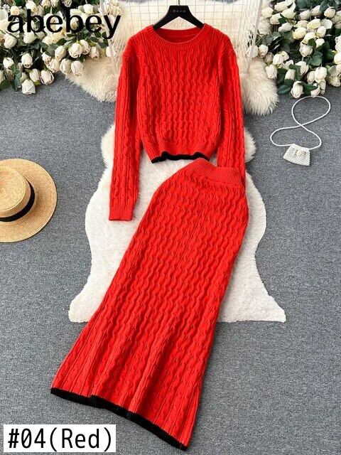 ホームセータースーツ長袖プルオーバー+弾性ロングスカートルーズニット2点セット エラスティック 伸縮