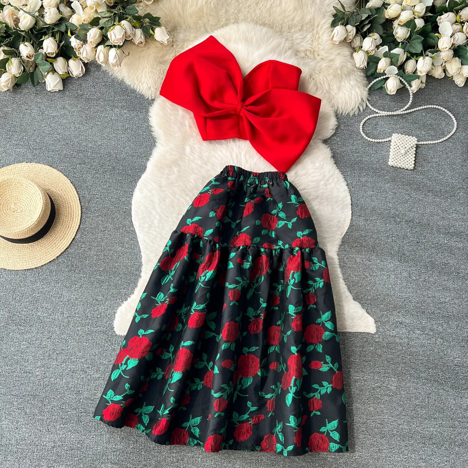 かぎ針編みセクシー 2 点セットノースリーブ不規則チューブトップ + Floral ローネックロングスカートクラブマッチング衣装