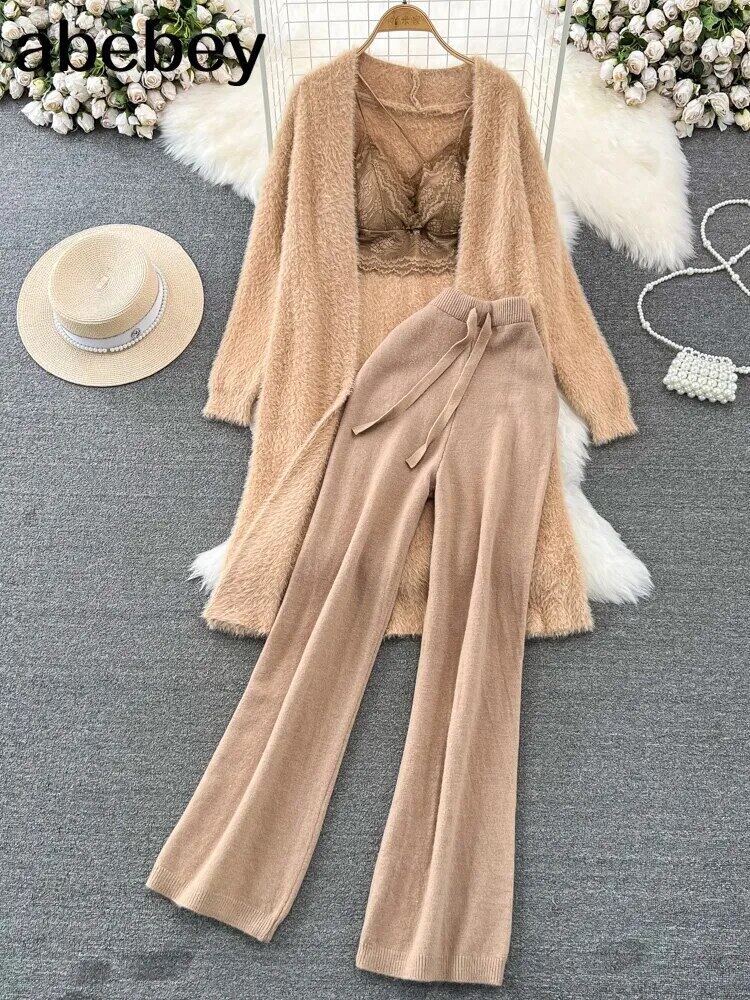 セーターセット秋冬ニットベストロングカーディガンパンツ 3 個セットジャージ衣装婦人 オータム 秋物 ウィンター 冬物