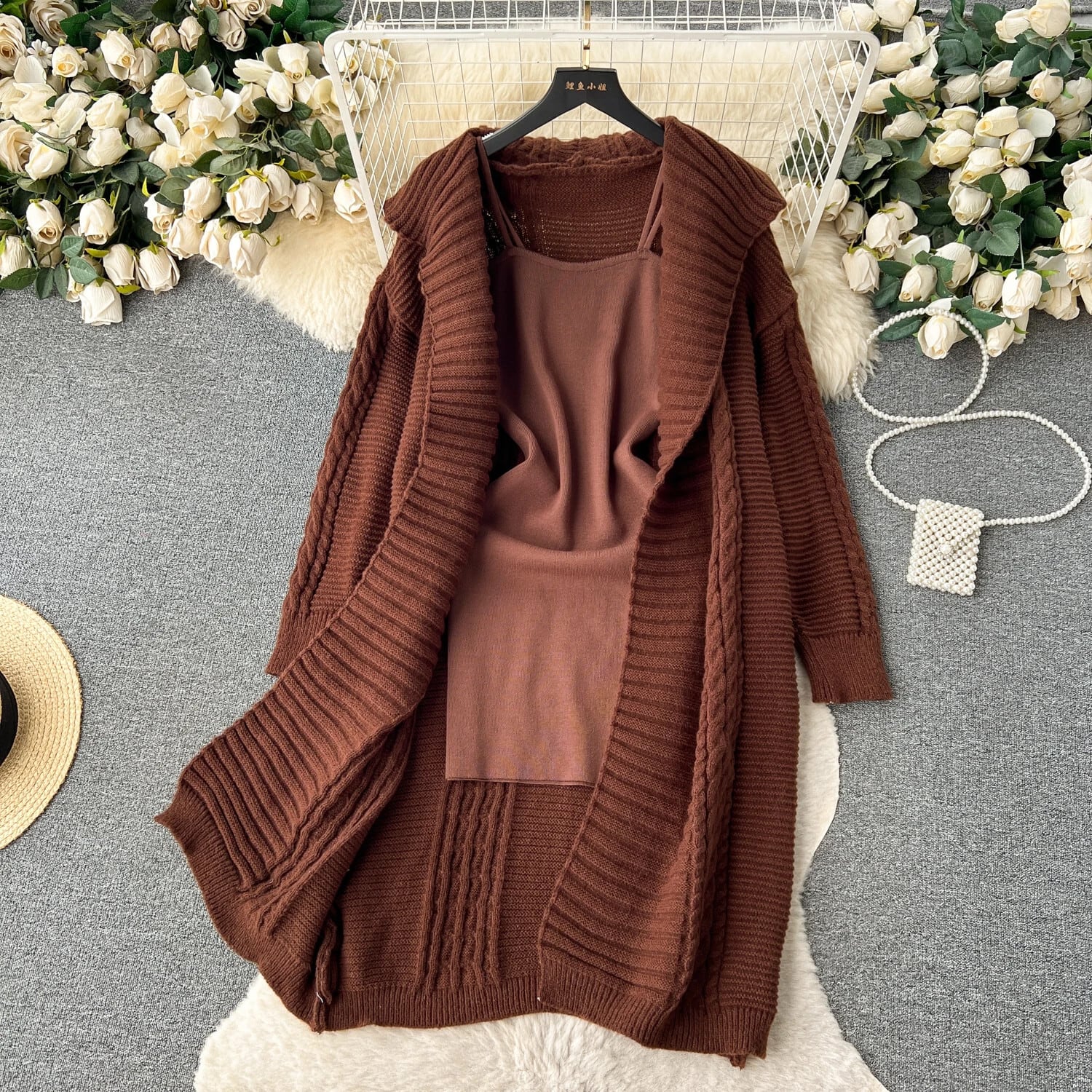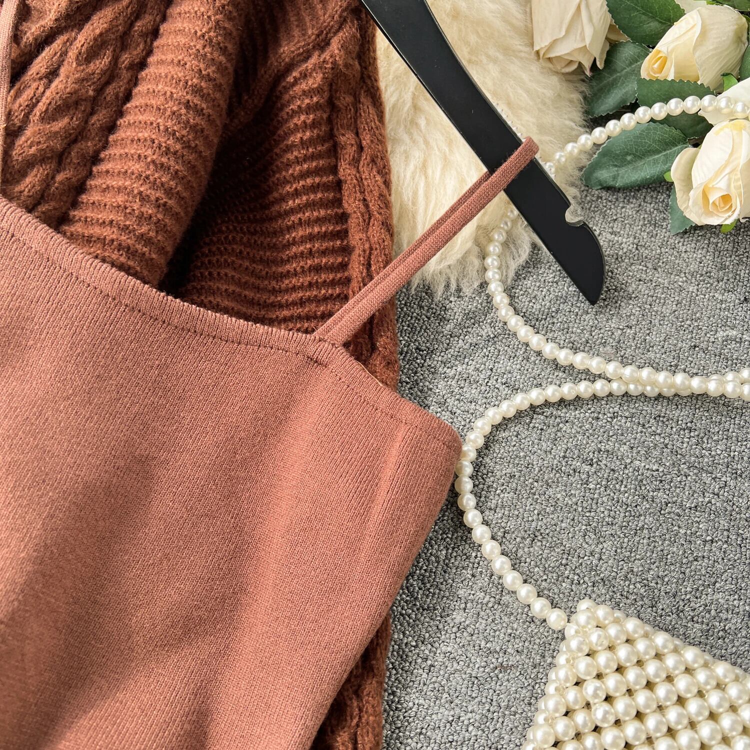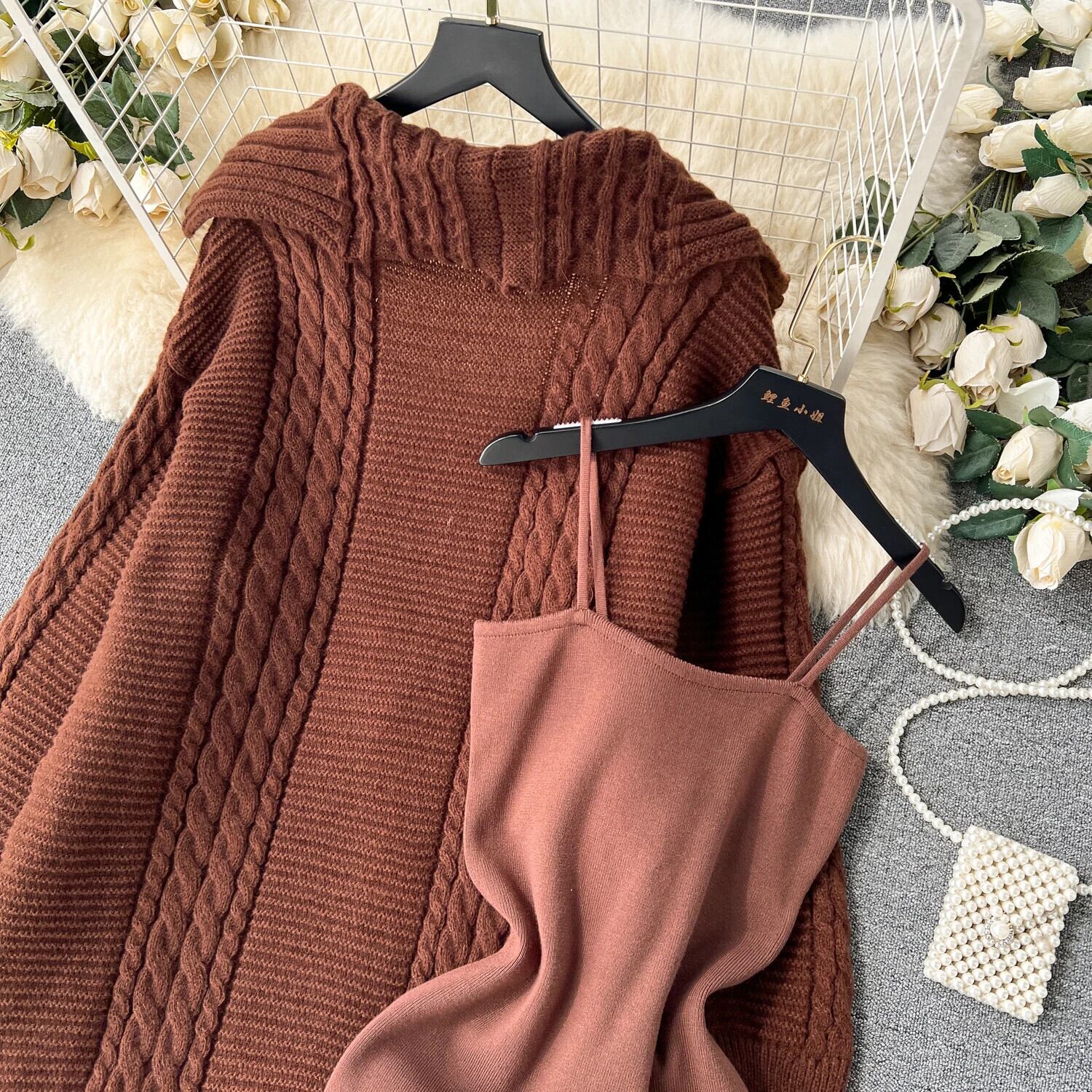 ニットセット冬フレンチ長袖ロングコートノースリーブスリムドレス暖かいセータースーツ ウィンター 冬物