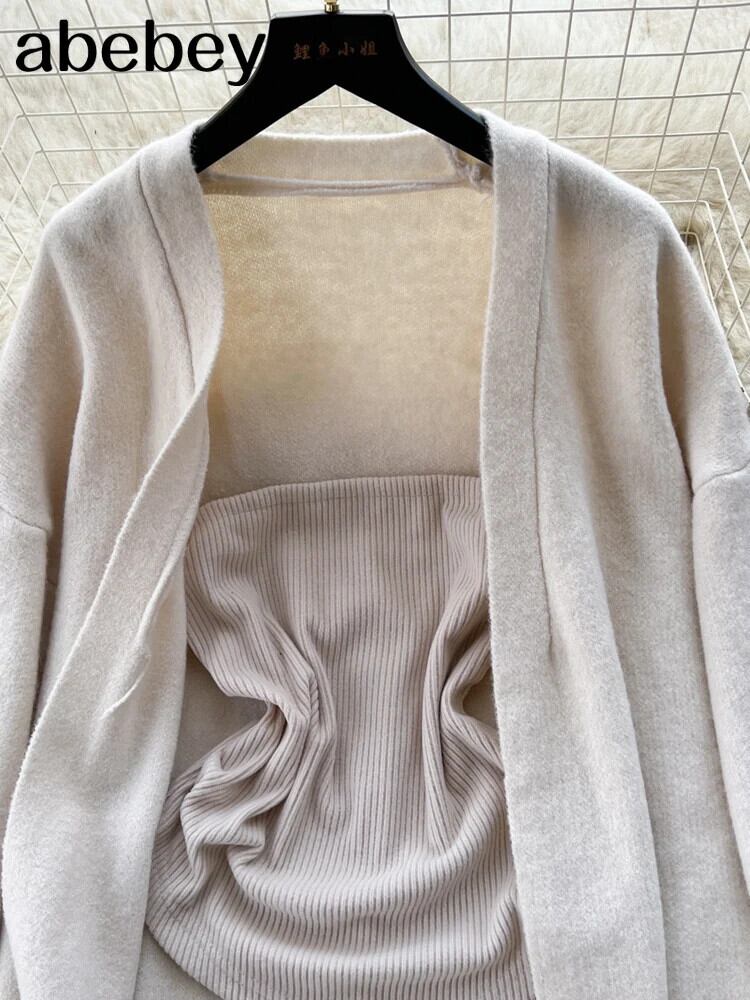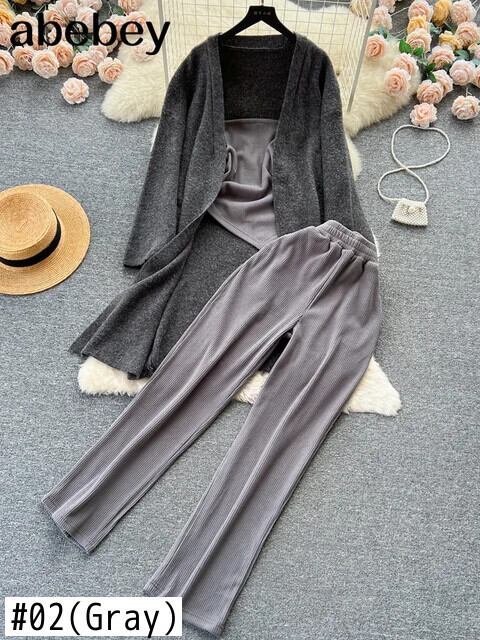 タンクトップワイドレッグロングパンツロングカーディガンコートスーツルーズ衣装セーター冬ニット 3 点セット ウィンター 冬物 ワイドパンツ ソリッドカラー