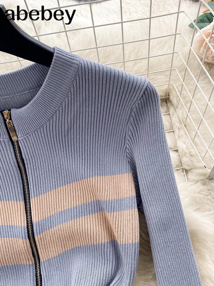 O ネック長袖秋ニットドレスジッパーシースストリートアメリカンレトロスリムセーターロングドレス オータム 秋物