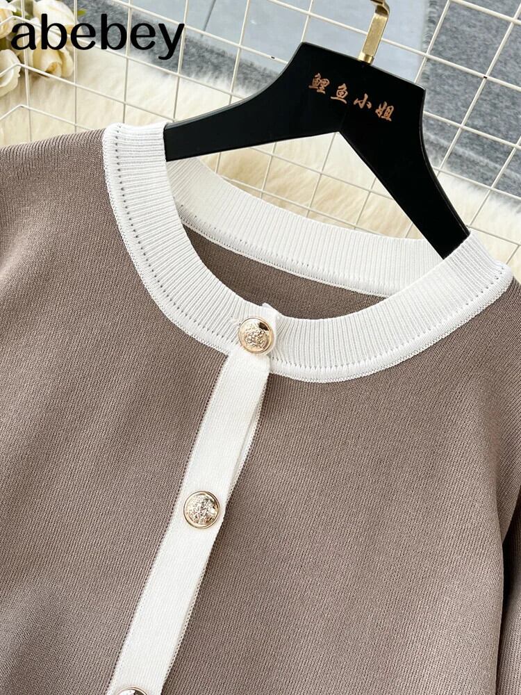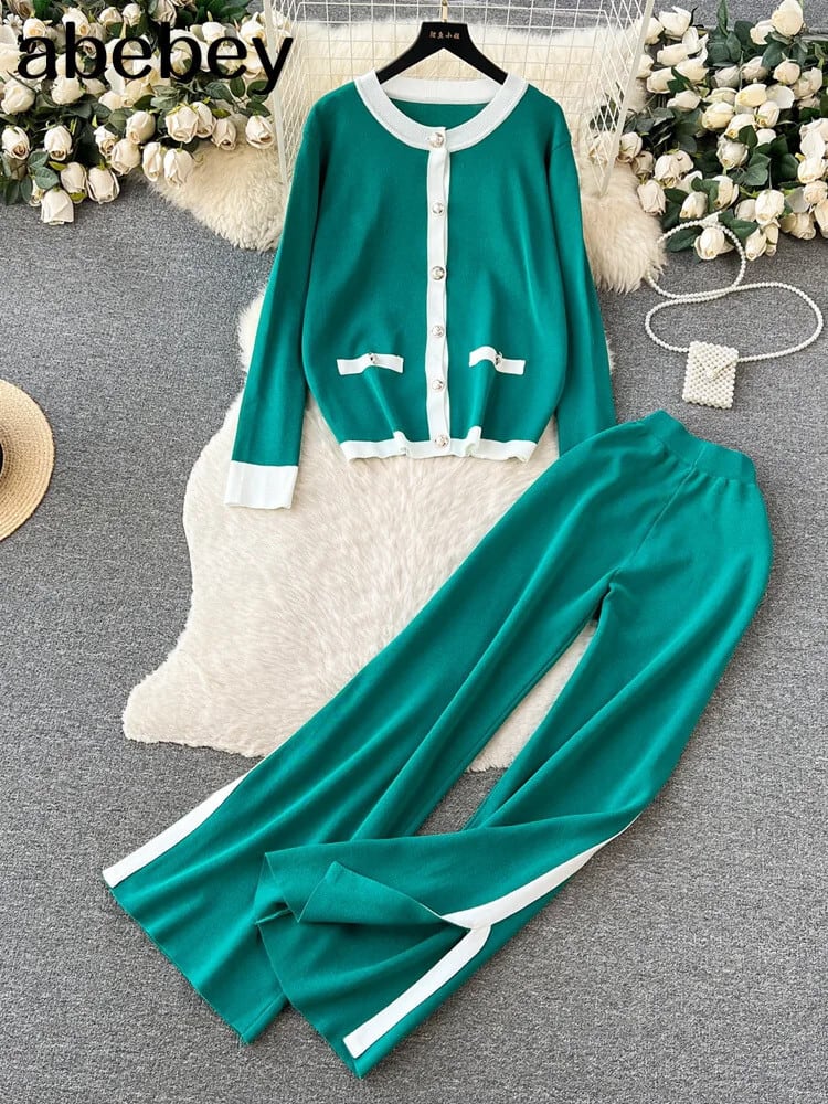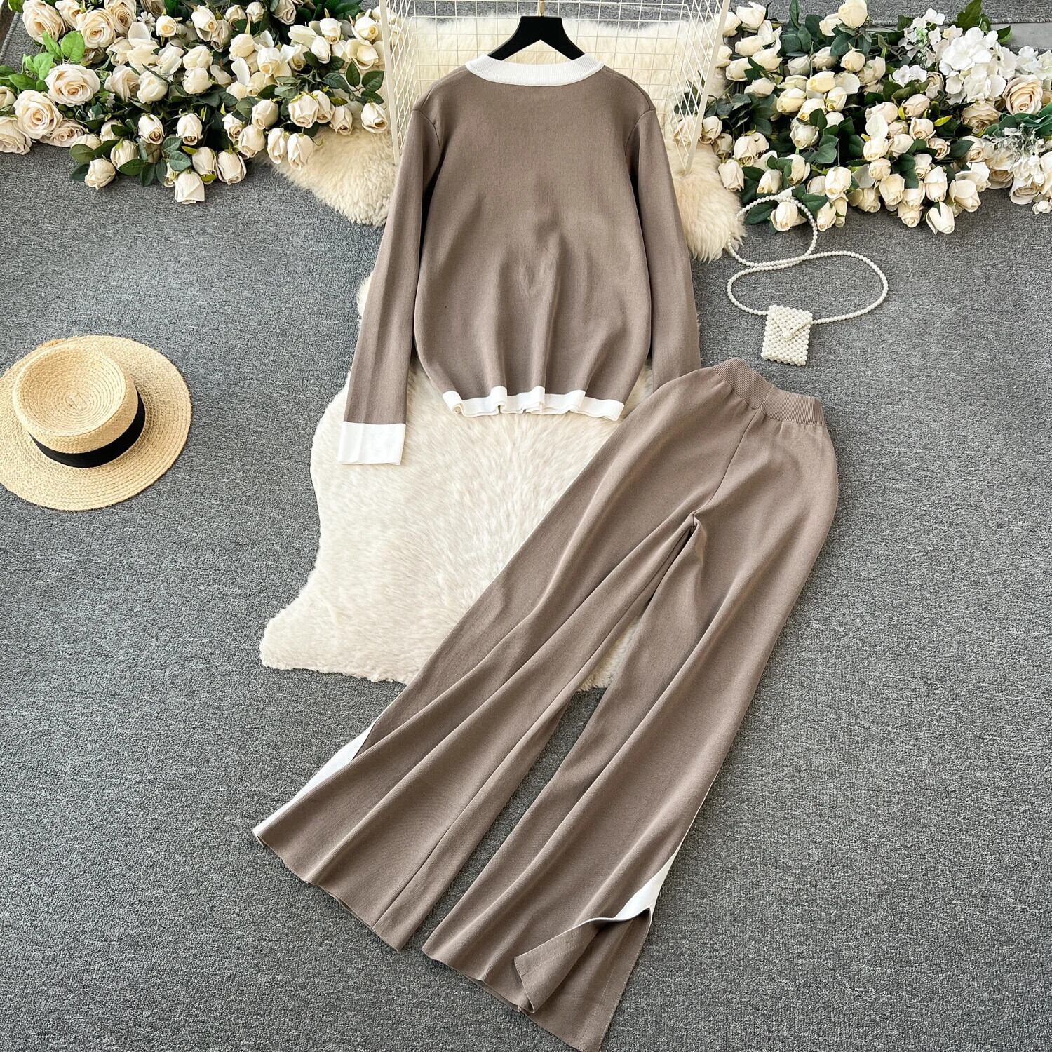 秋暖かいツーピーススーツ O ネック長袖プルオーバー + 長ズボンストリートニットセーターセット ロング オータム 秋物 Oネック
