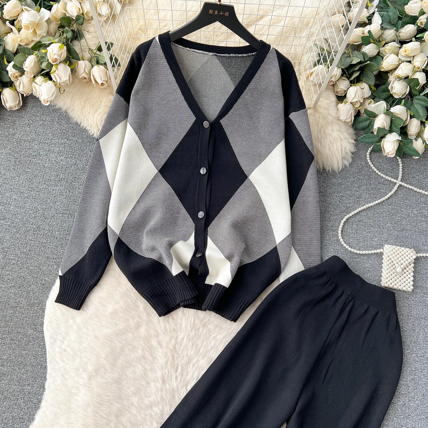 高級ジャージ ニット ハーレム パンツ スーツ オープン カーディガン セーター 2 枚セット衣装