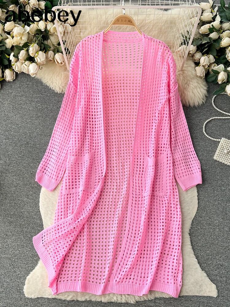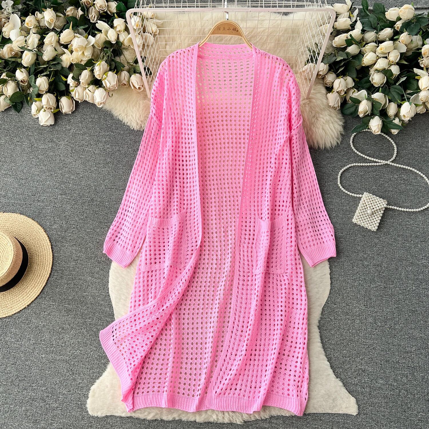 夏アウトビーチロングカーディガン花柄ニットストリートルーズカーディガンボヘミアンオーバーコート サマー 夏物 ソリッドカラー
