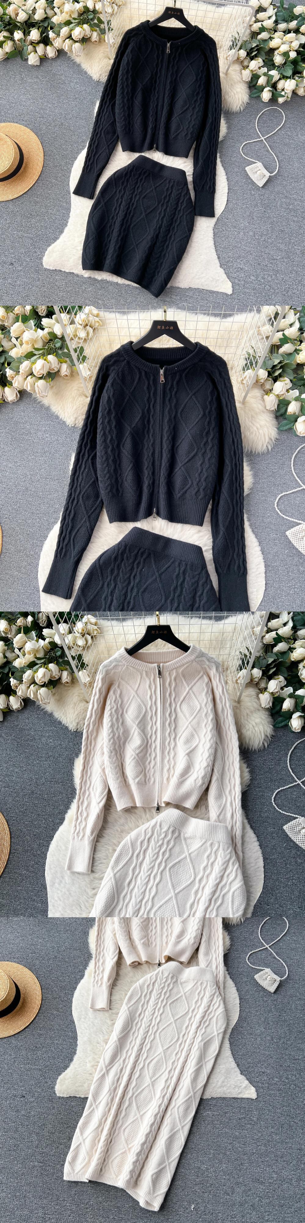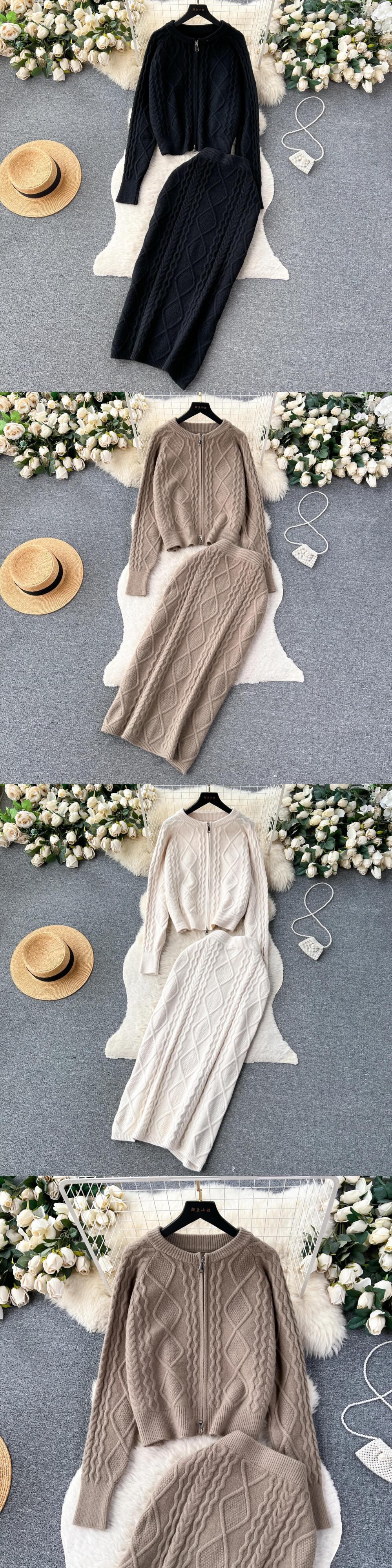 ニット 2 個セットプルオーバーセータークロップトップス & ニットスカートボディコンオフィスレディスカート 2 個スーツ冬布 ウィンター 冬物 会社 学校 通勤や通学にも