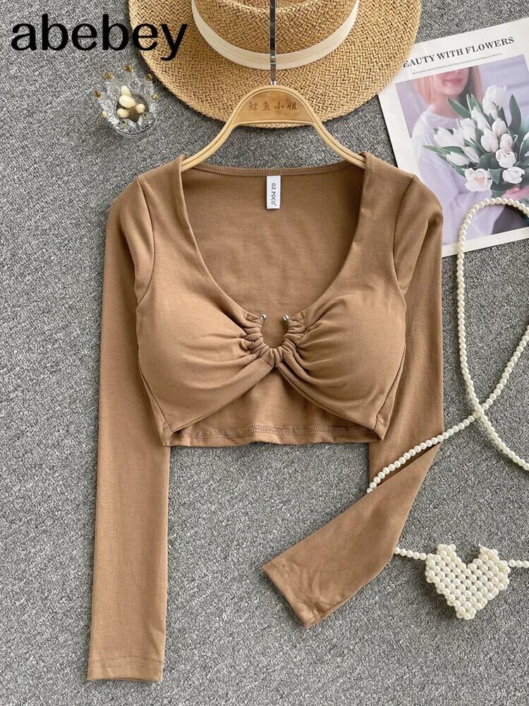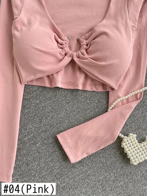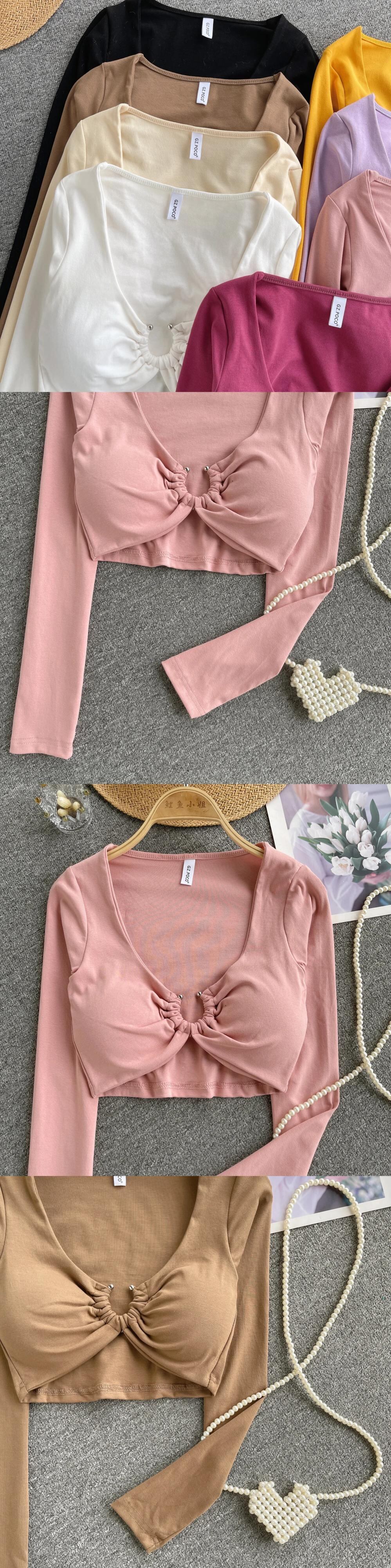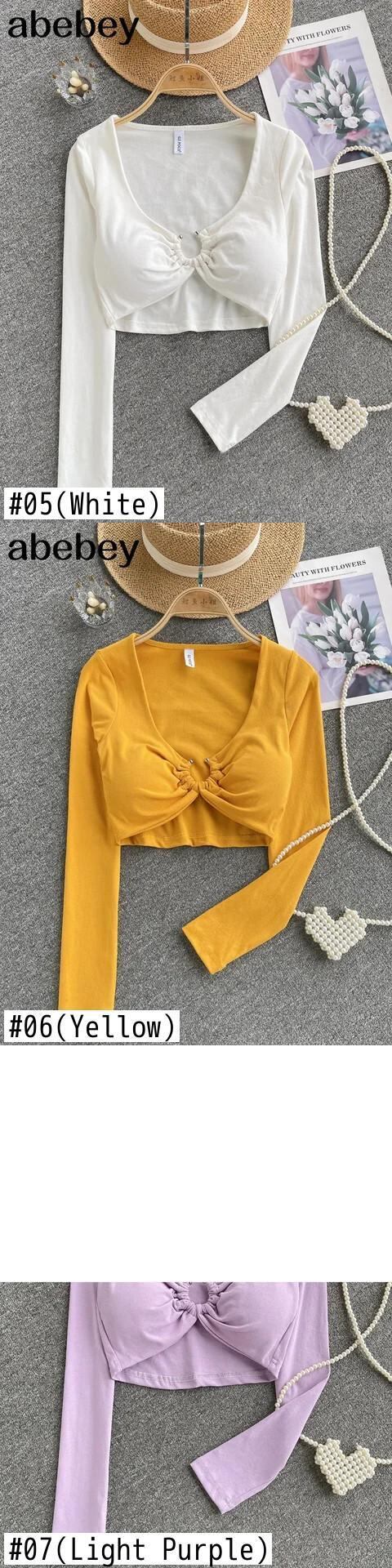 tシャツクロップトップス長袖かわいいtシャツ内蔵ブラジャーセクシートップ原宿韓国ファッション ロング 大人ガーリー