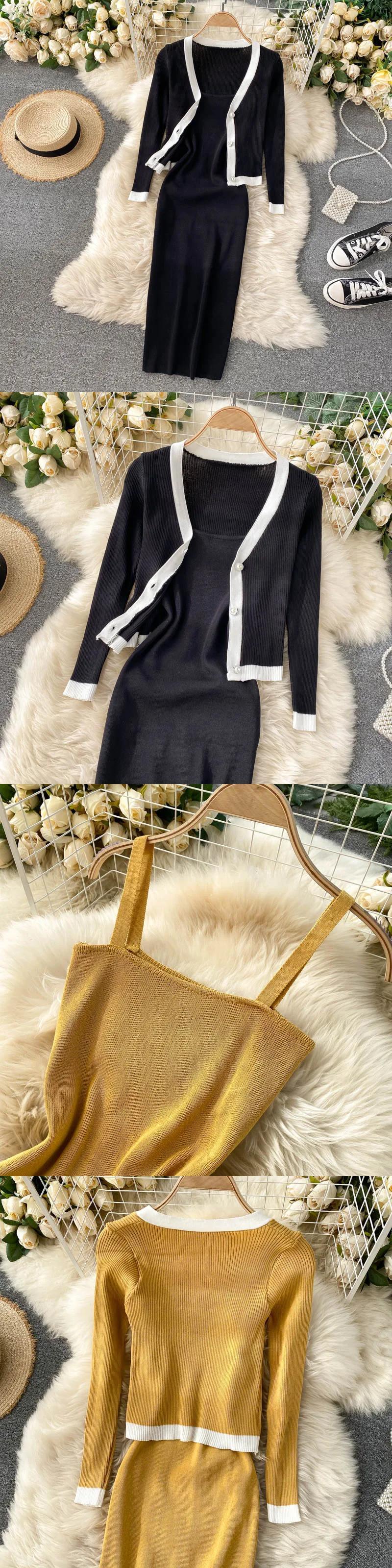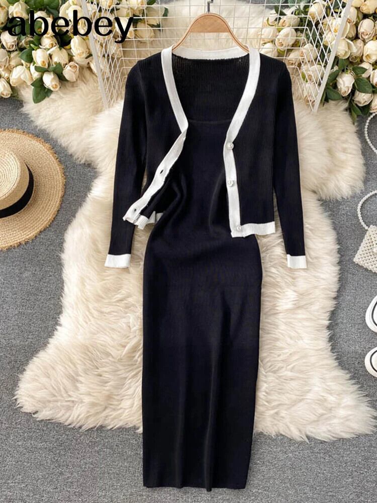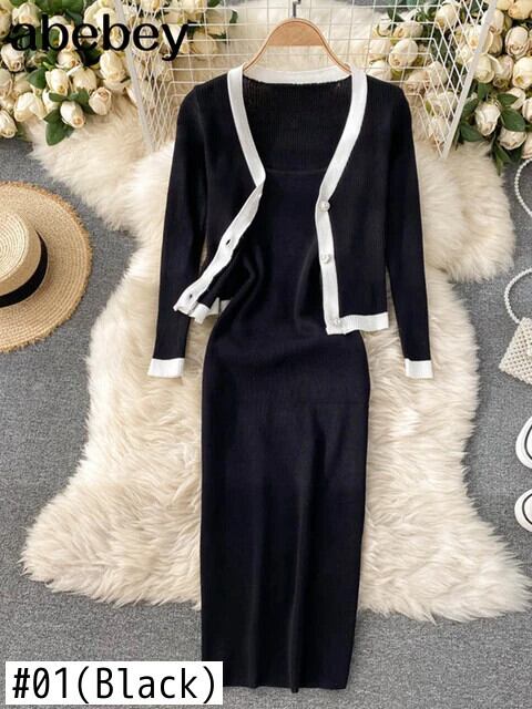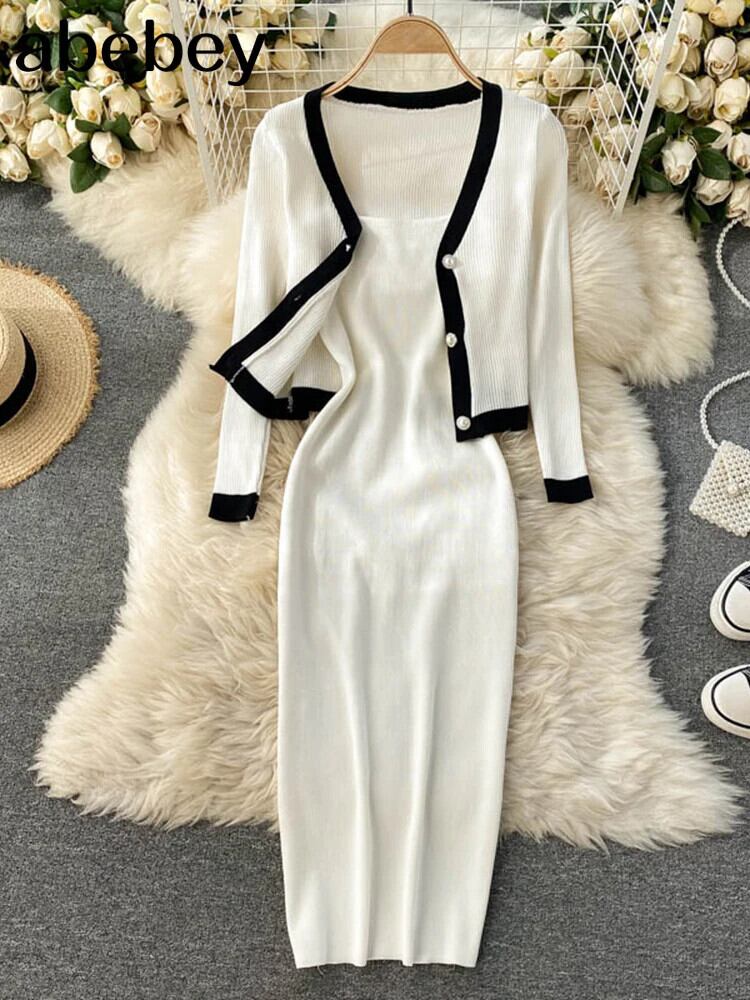 セクシーセット 2 ピースウエスト A ライン パーティー ニット パッチワーク Vestidos ドレス Aライン