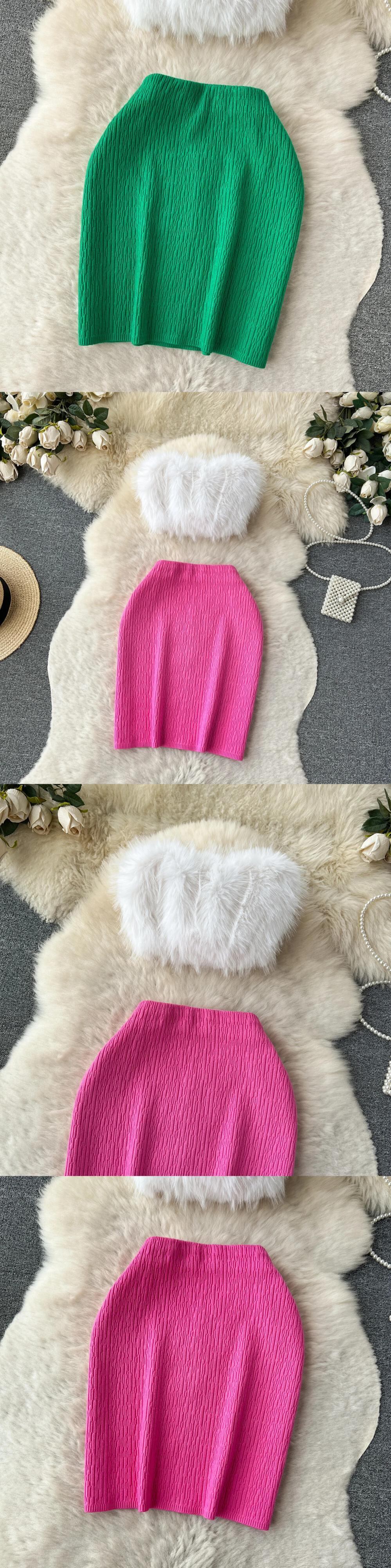 ニットツーピースセットキャミソールセクシー白ショートトップ+弾性ウエストニット最小ピンクショートスカートスーツ ホワイト エラスティック 伸縮 ソリッドカラー