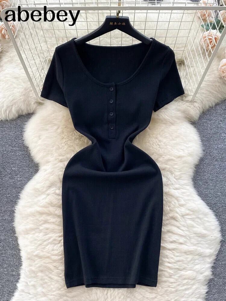 ドレスブルゴーニュ夏ニットボディコンドレスミニセクシーエンパイアブラックoネックパーティーセレブスリム サマー 夏物