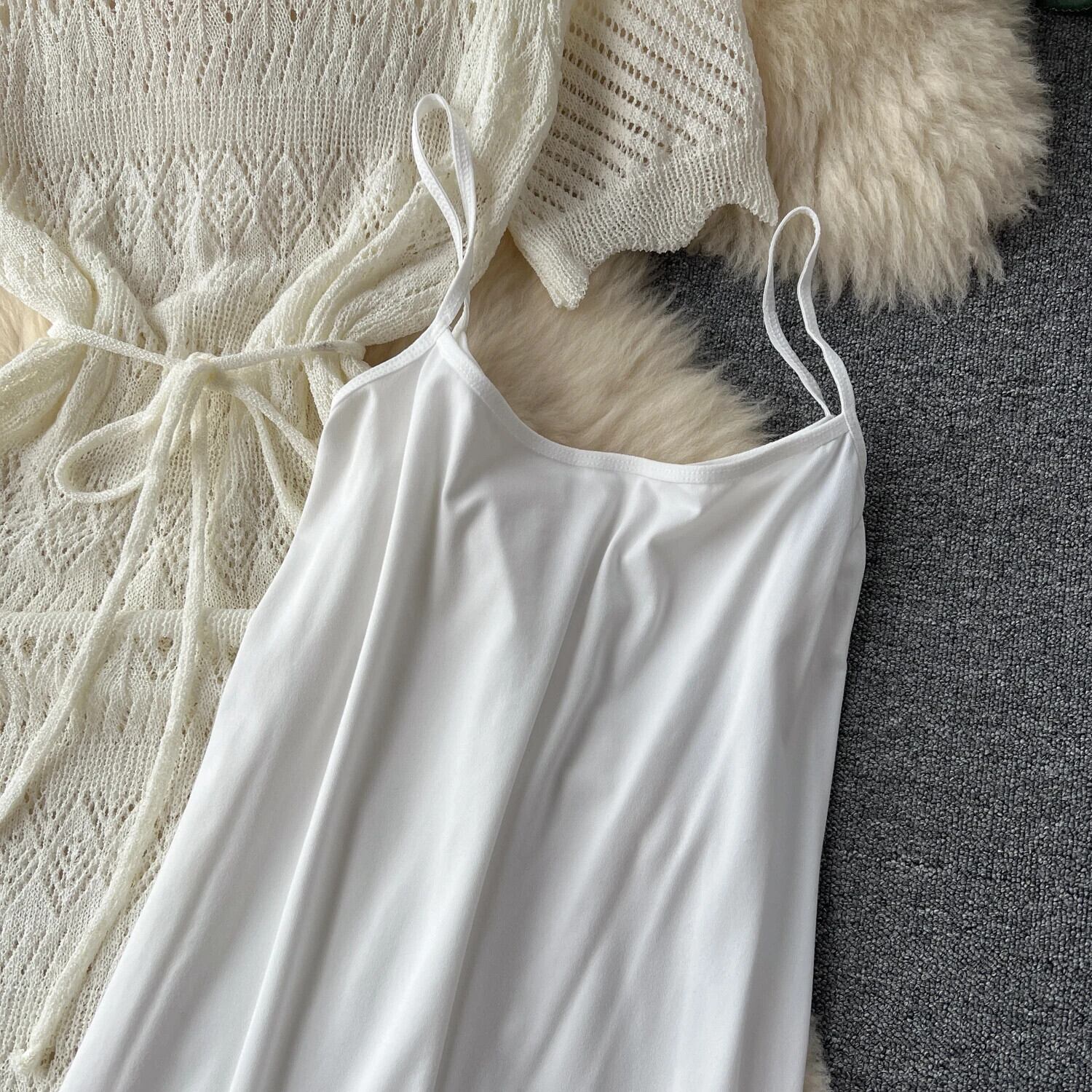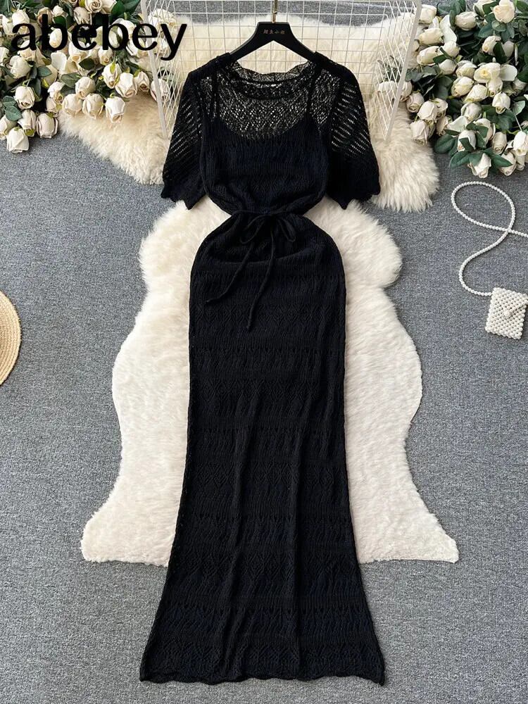 夏ツーピースセットレトロアウトサッシ O ネックブレーススカート Y2K ニットドレス サマー 夏物 Oネック