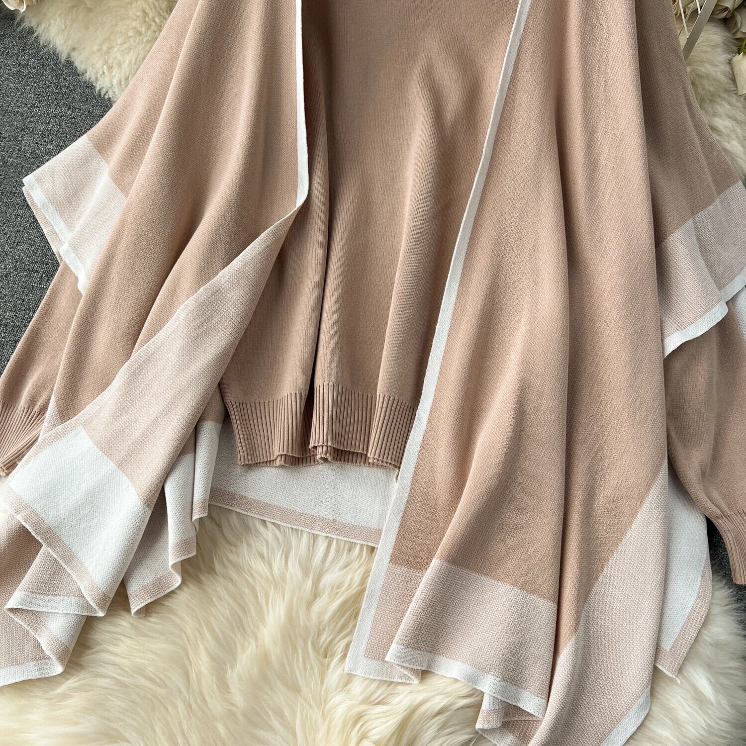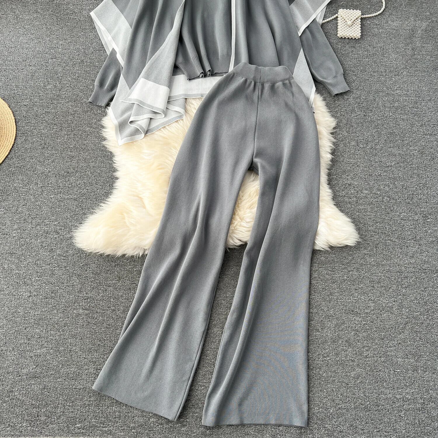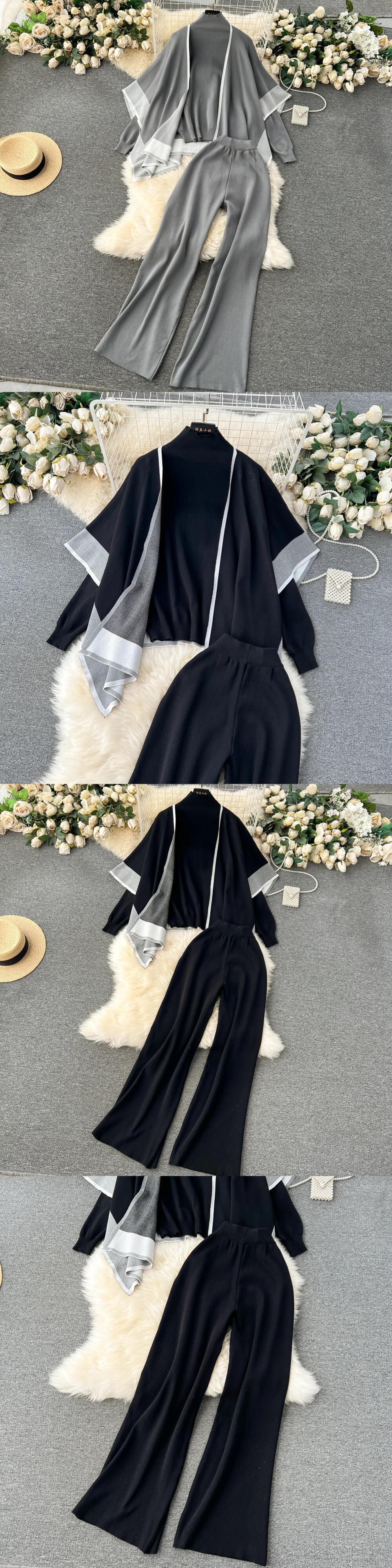 冬 3 枚セットカーディガンルーズベスト + 暖かいプルオーバー + 巾着ワイドレッグロングパンツ暖かいセータースーツ ウィンター 冬物 ワイドパンツ
