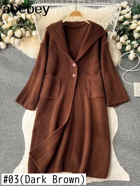 冬ルーズニットオーバーコートラペルネック長袖レースアップストリート秋ロングセーター Cardiagns オータム 秋物 ウィンター 冬物