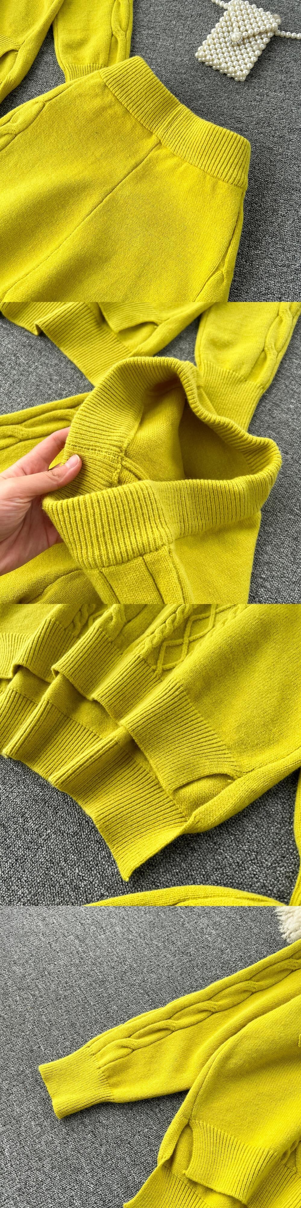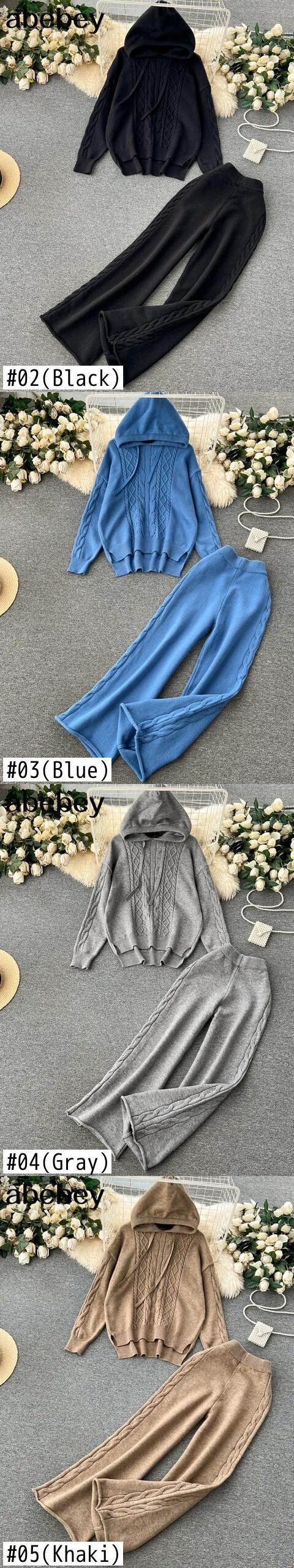 ツーピースと帽子秋セータートラックスーツルーズセーター + パンツニットウォームセットワイドレッグパンツスーツズボン オータム 秋物 ワイドパンツ