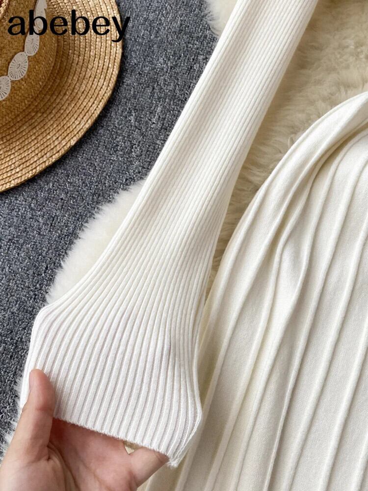 アウトニットロングドレス冬 V ネック長袖 A ラインセーターマキシドレス ウィンター 冬物 Vネック Aライン ソリッドカラー