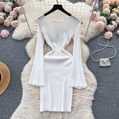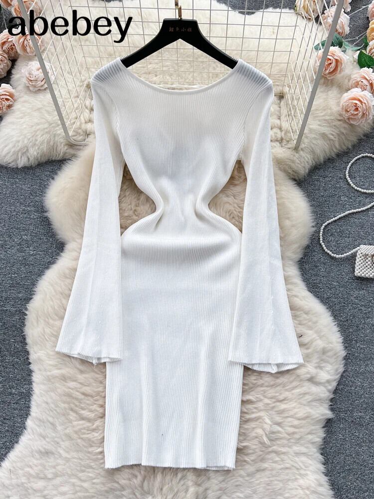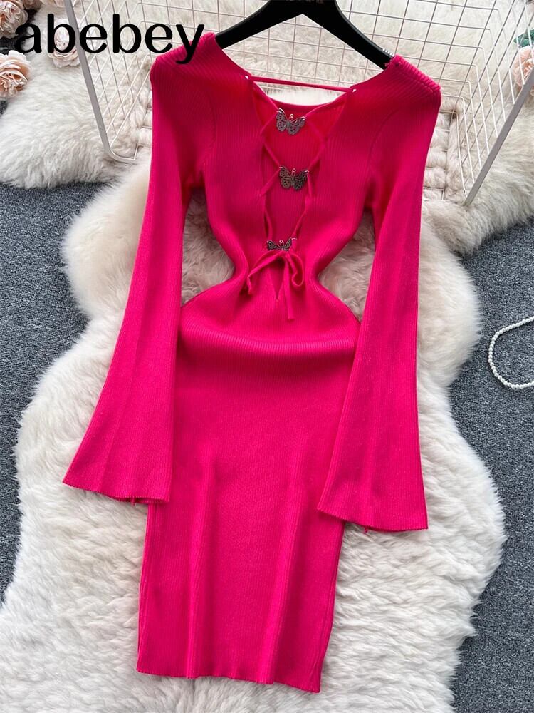 赤セクシーセータードレス O ネック長袖ブラックレスミディドレス秋ストリートニットボディコンドレス ロング レッド オータム 秋物 Oネック ソリッドカラー