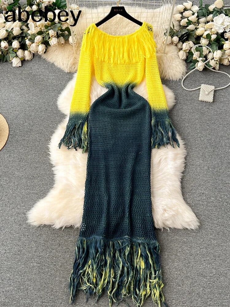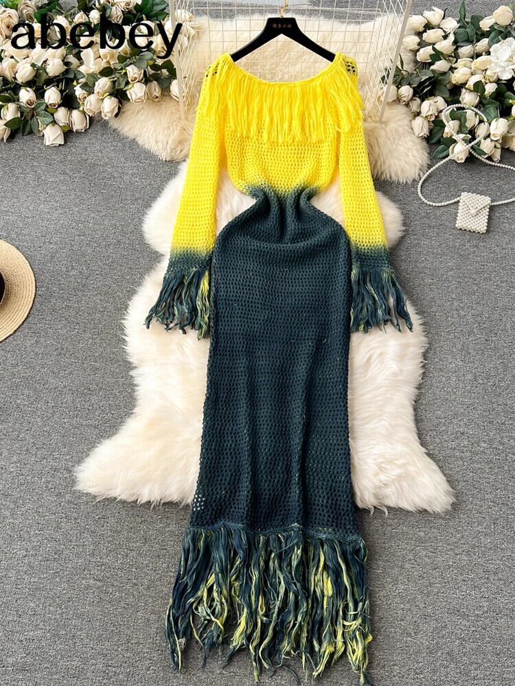 秋アウトロングドレススラッシュネック長袖スリムストリートビーチテルマキシドレス オータム 秋物