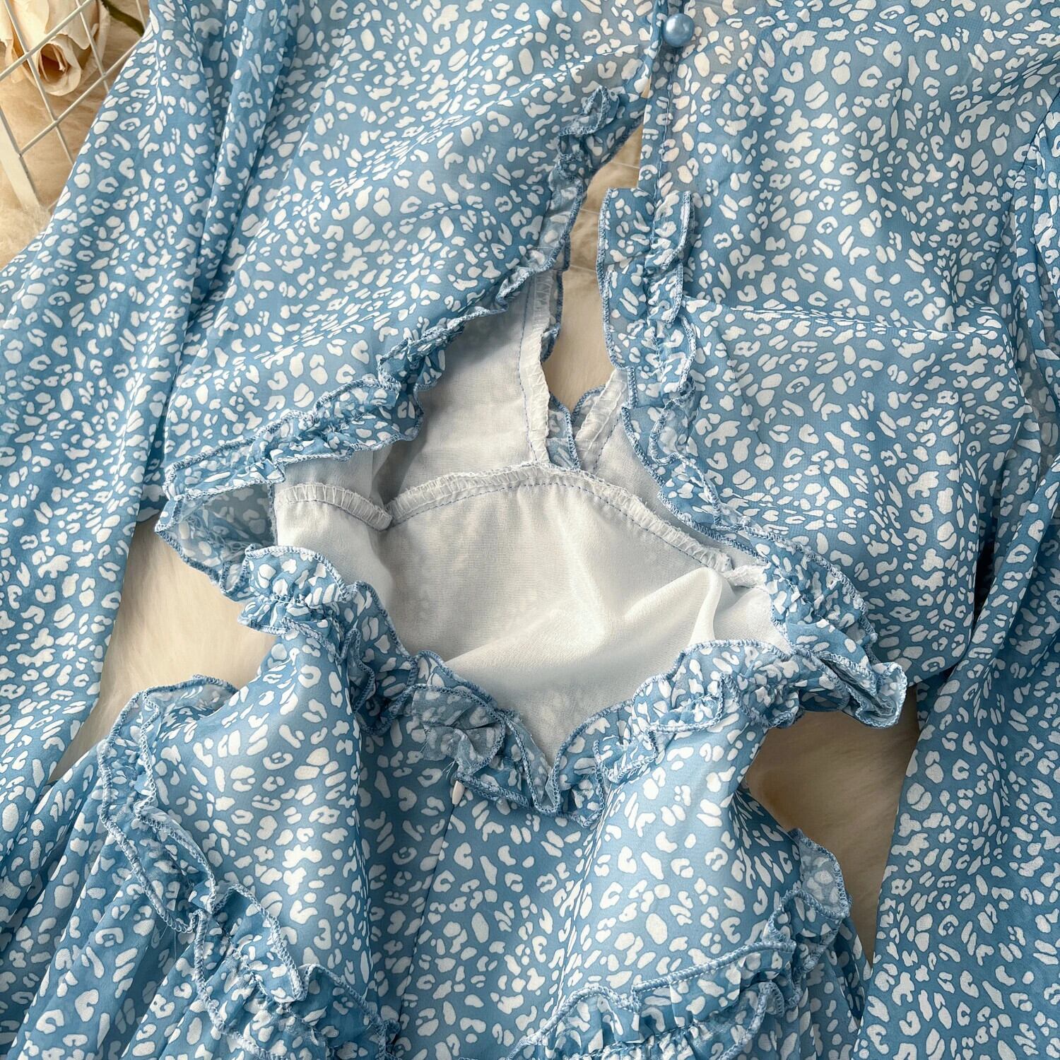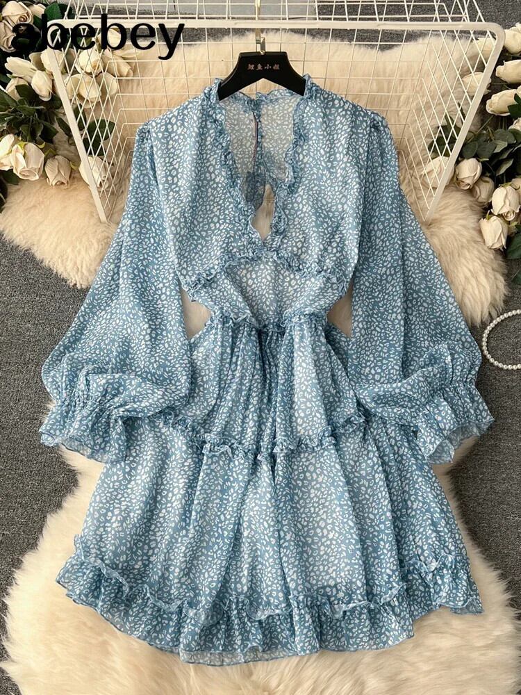 Harlow 花柄フリルドレス背中開いた V ネックドレスミニサマードレスレディースパーティードレス 夏物 Vネック