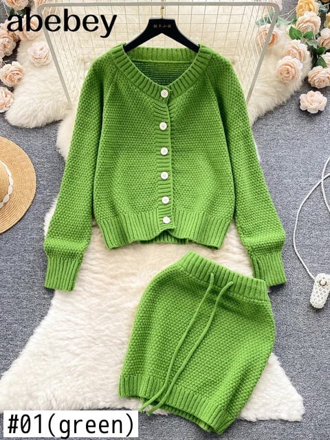 スカートセット 2 ピース衣装秋/冬長袖ニットセータースカートセットドレスセット ロング オータム 秋物 ウィンター 冬物 ソリッドカラー