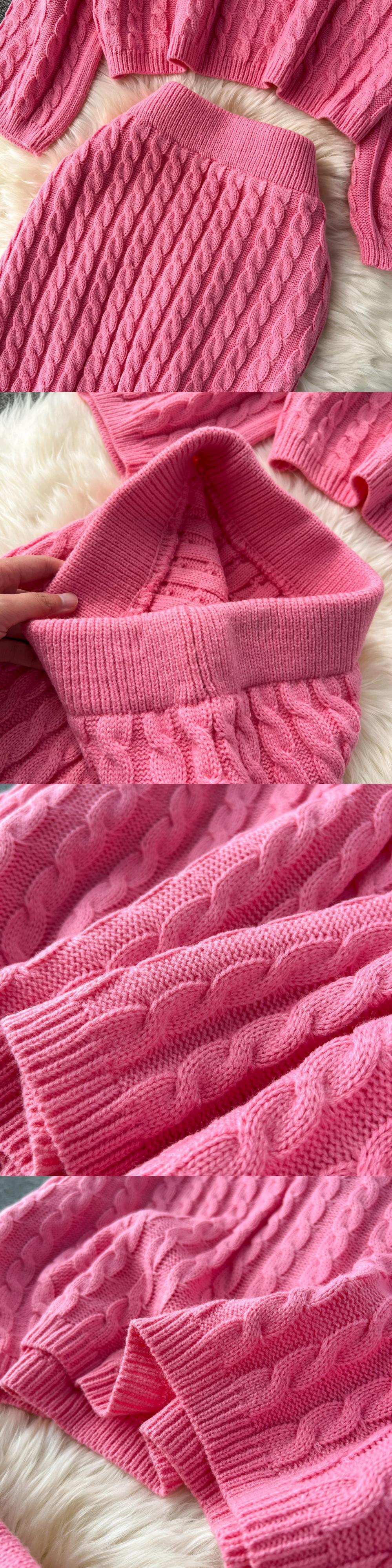 秋セーター 2 枚セットツイストルーズプルオーバー + 弾性ロングスカート冬厚手ニットスーツ エラスティック 伸縮 オータム 秋物 ウィンター 冬物