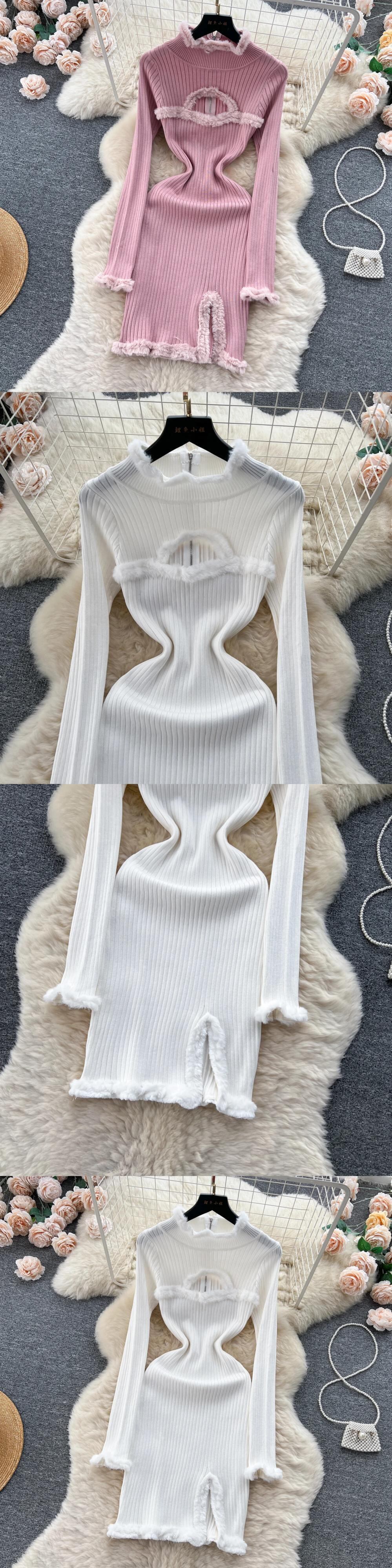 ニットペンシルドレス長袖アウト弾性スリムドレス秋冬セクシーボディコン暖かいセータードレス ロング エラスティック 伸縮 オータム 秋物 ウィンター 冬物