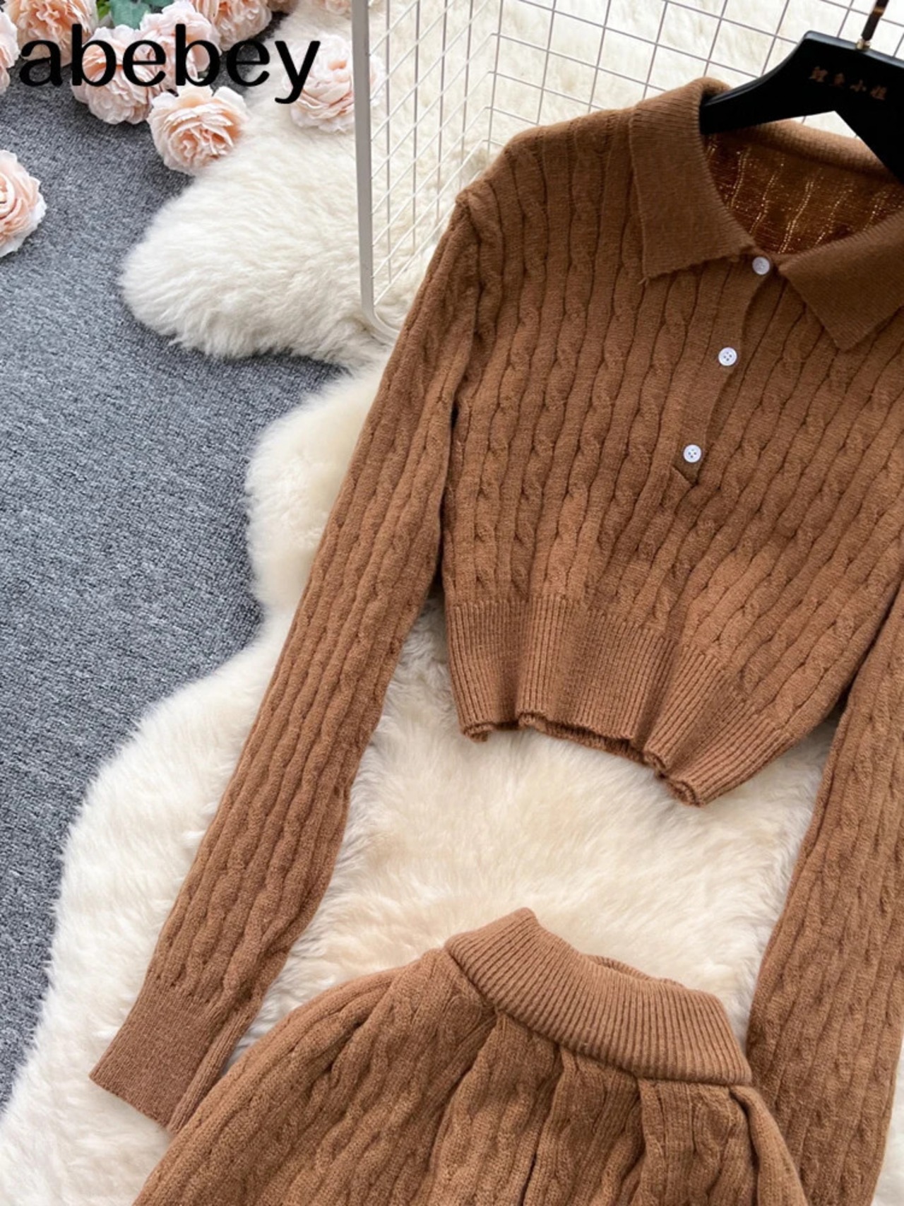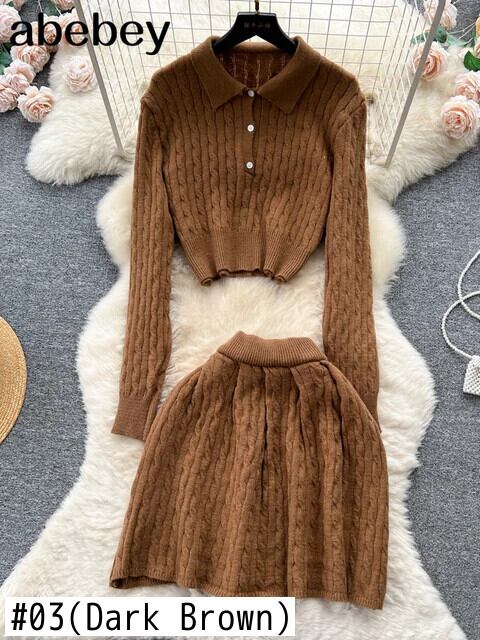 秋ニットツーピーススーツスタイルルーズプルオーバー+ミニニットスカート暖かいセーターセット オータム 秋物