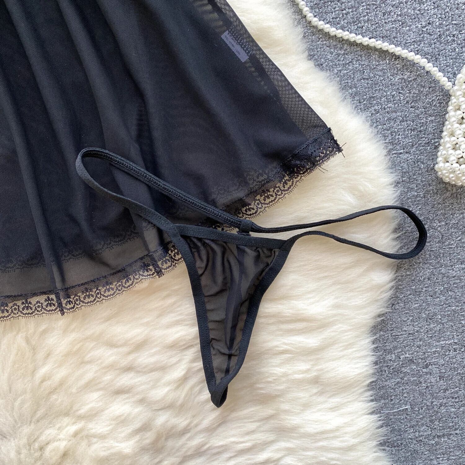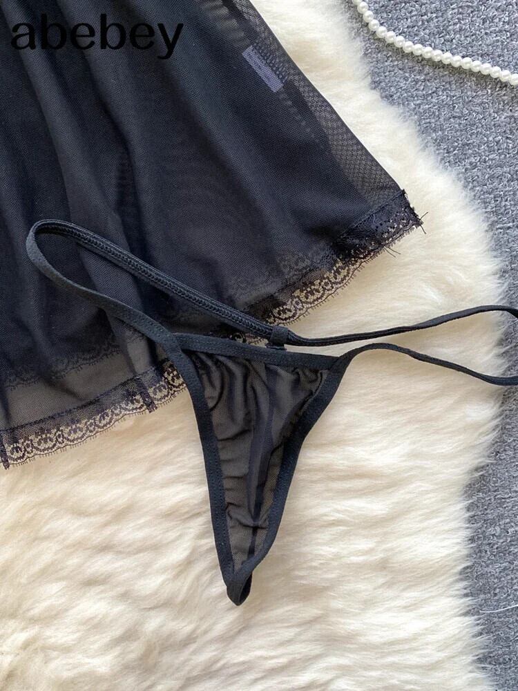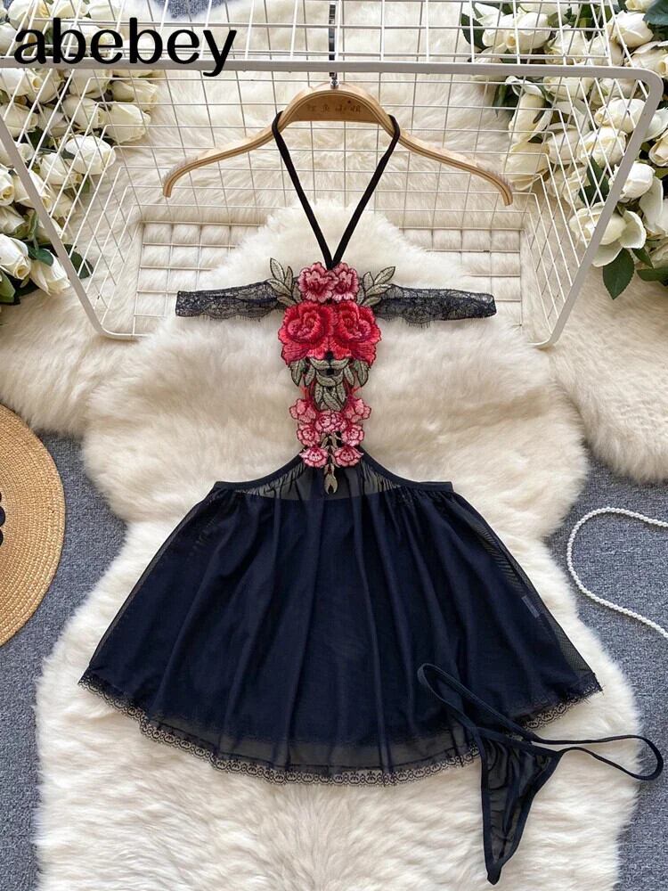 薄手エロポルノパジャマドレスホルター刺繍背中開いた Hotsweet セクシーランジェリーメッシュミニドレス 大人ガーリー スウィート キュート カジュアル