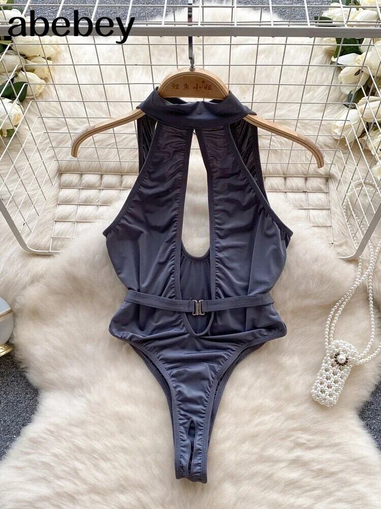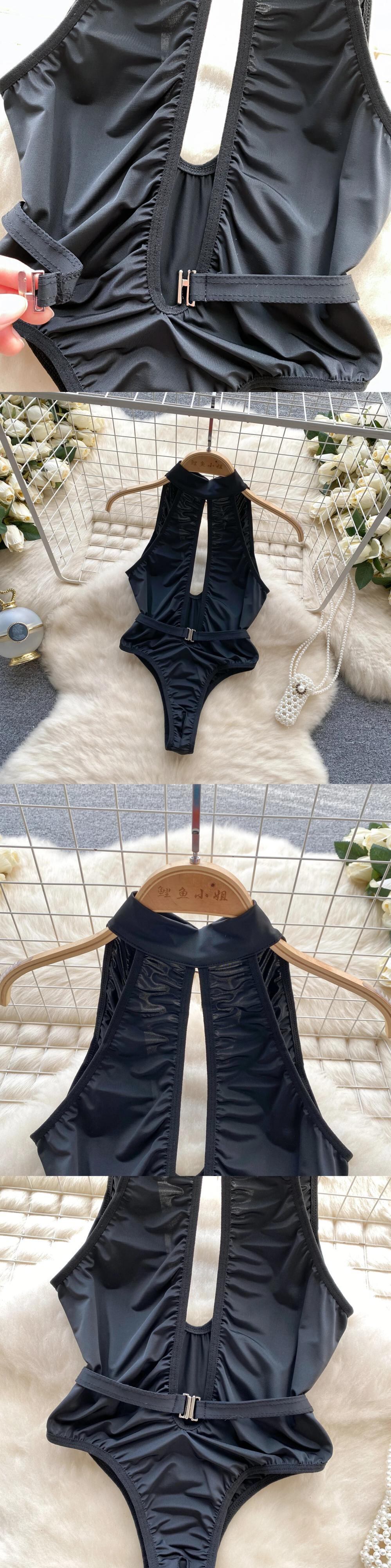 ユーロアメリカン水着ブラックメッシュくり抜きレースアップワンピース水着セクシータイト水着ビキニスポット卸売
