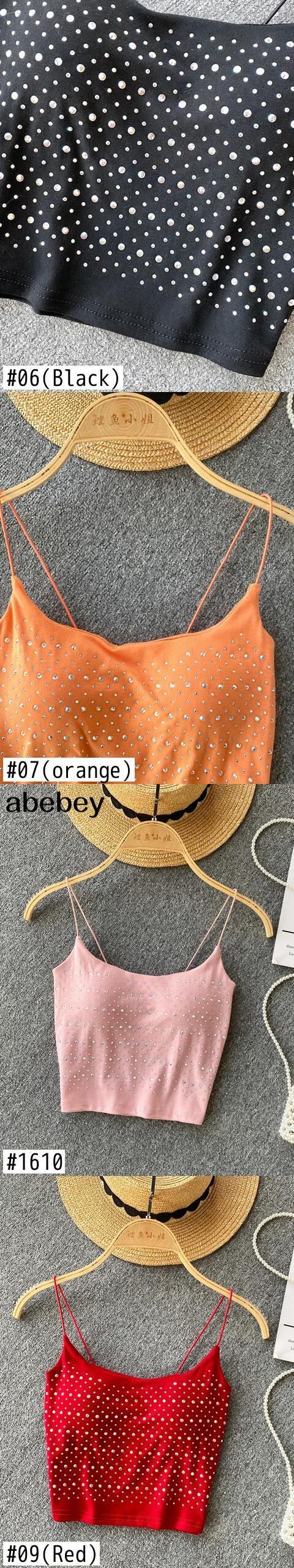 夏ダイヤモンドミニキャミソールストラップスリムセクシー背中開いた 2024 Hotsweet 休暇かわいいビーチスタイルショートトップス 大人ガーリー スウィート キュート カジュアル サマー 夏物