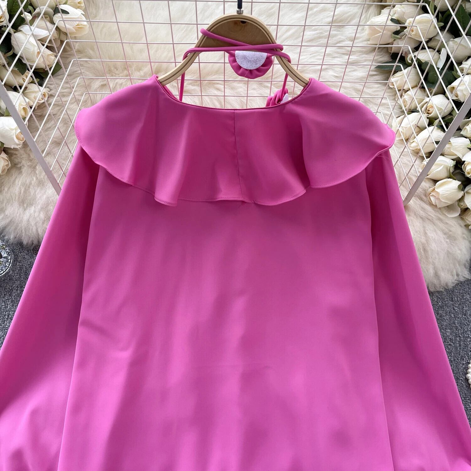 フランス V ネックルーズブラウス 2024 長袖フリルトップスベーシックストリート 3D 花春 OL シャツ ロング ラッフル スプリング 春物 Vネック フラワーデザイン