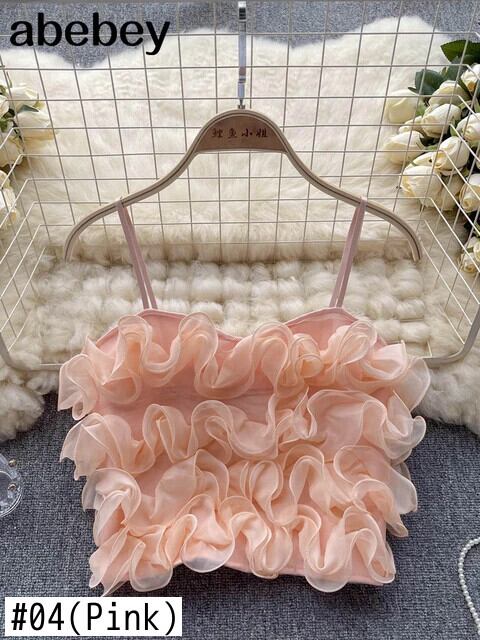 夏菌キャミソールストレッチスリムクロップトップノースリーブ Tシャツ女子甘いキャミソール 大人ガーリー スウィート キュート カジュアル サマー 夏物