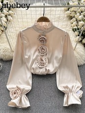 ブラウス半襟長袖ルーズトップススタイル 3D 花柄シャツ ロング