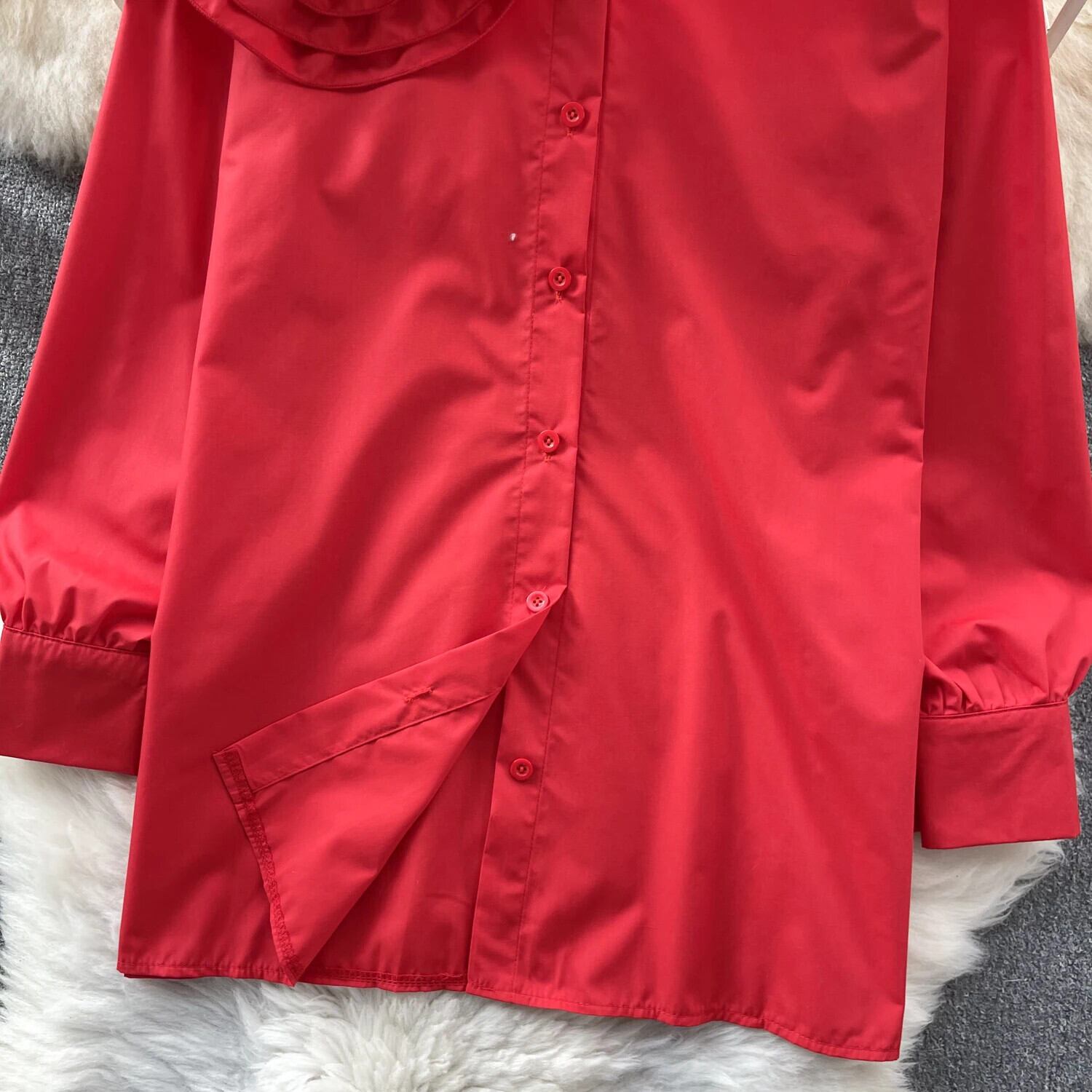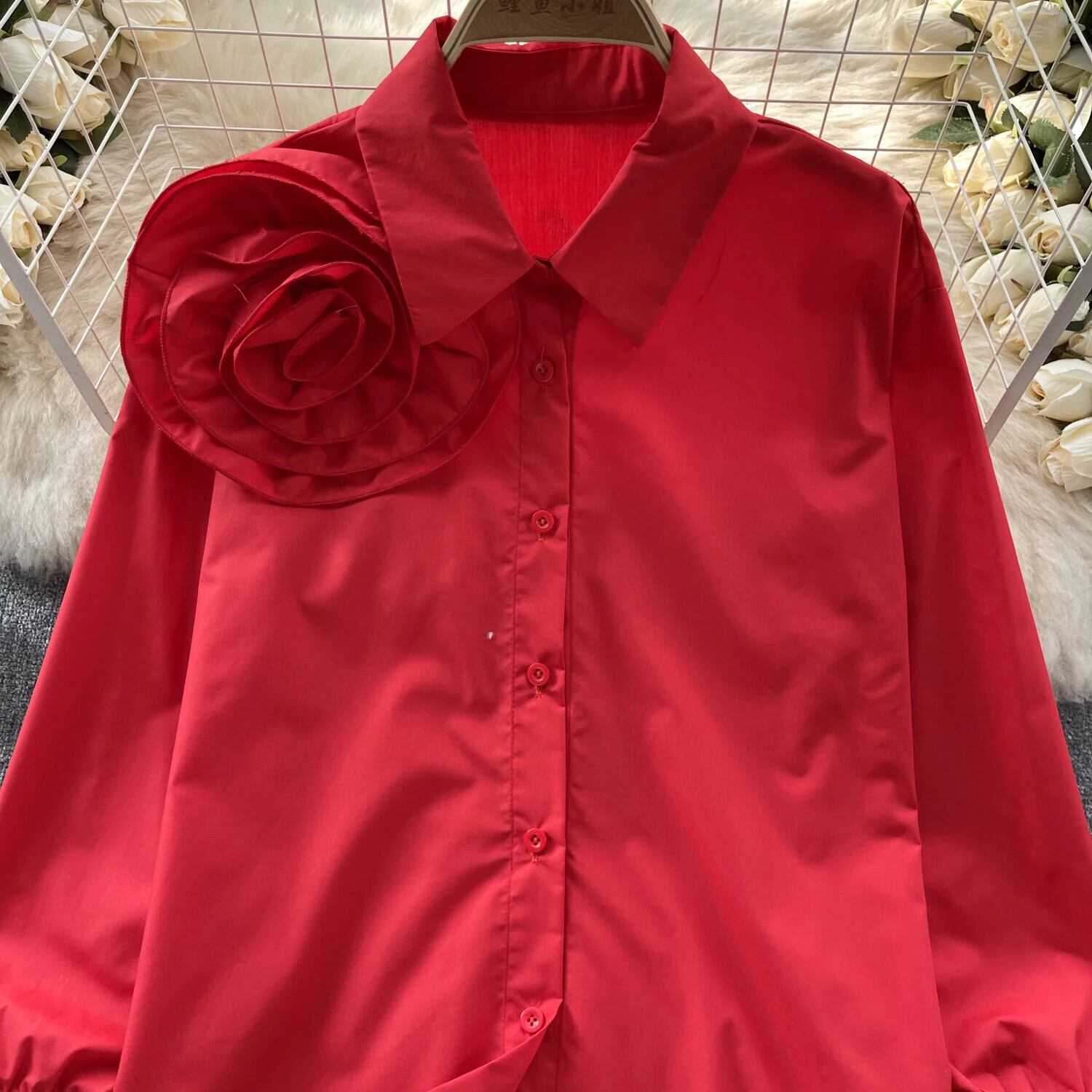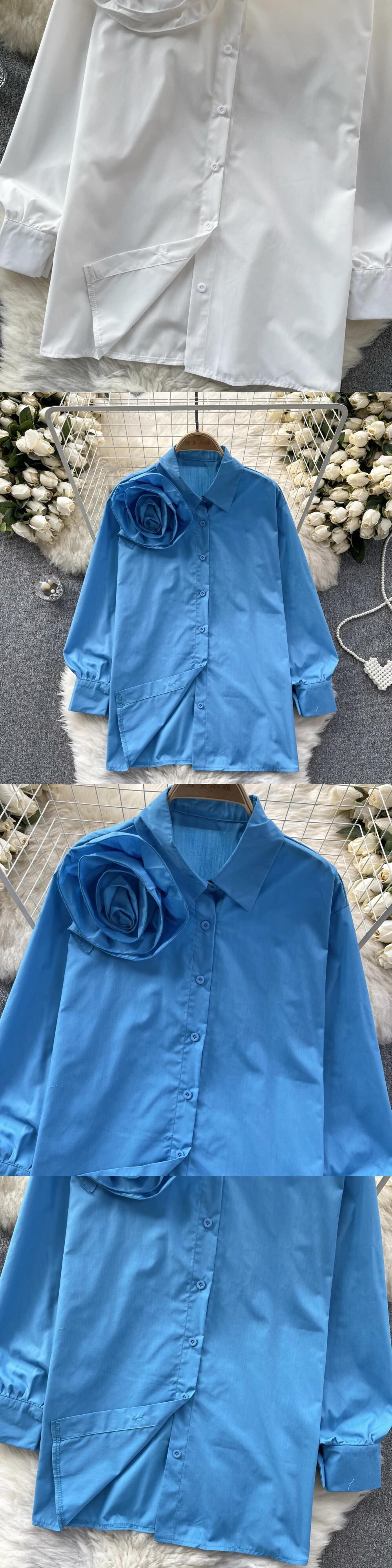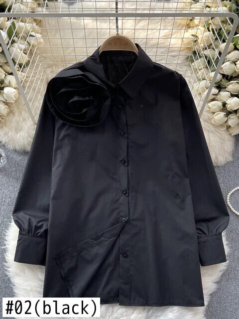 2024 春 3D ブラウスフランス長袖トップススタイル基本ストリートルーズ OL シャツ ロング スプリング 春物 ソリッドカラー