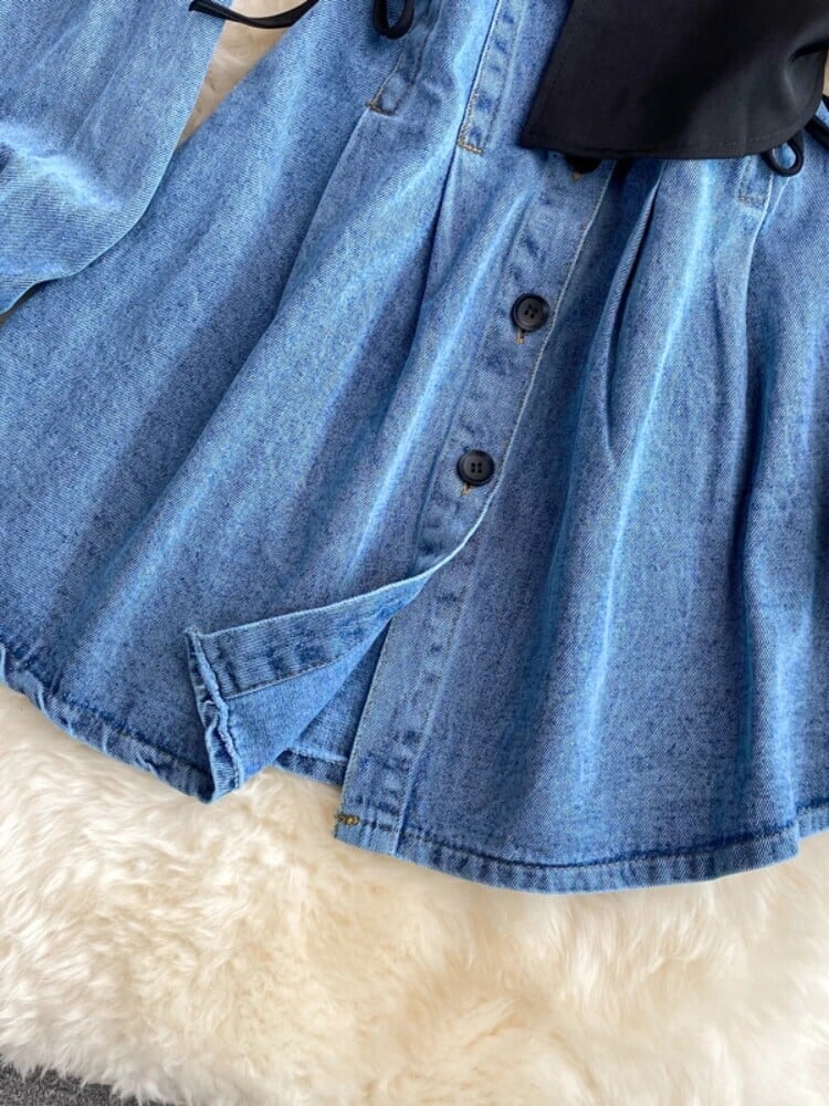 秋レトロデニムシャツ長袖ブラウスキャミソールパーティーシックジーンズトップス ロング オータム 秋物