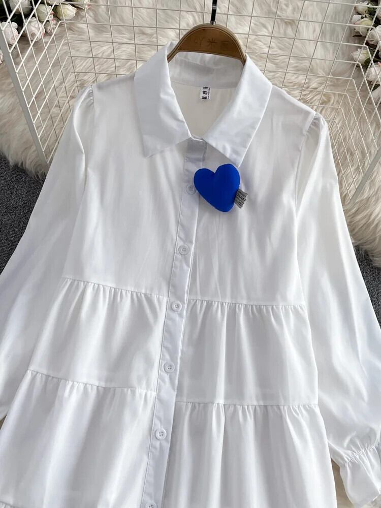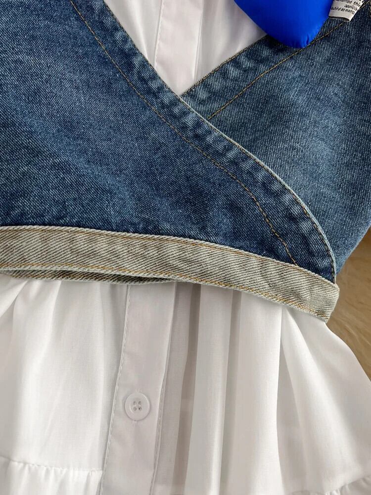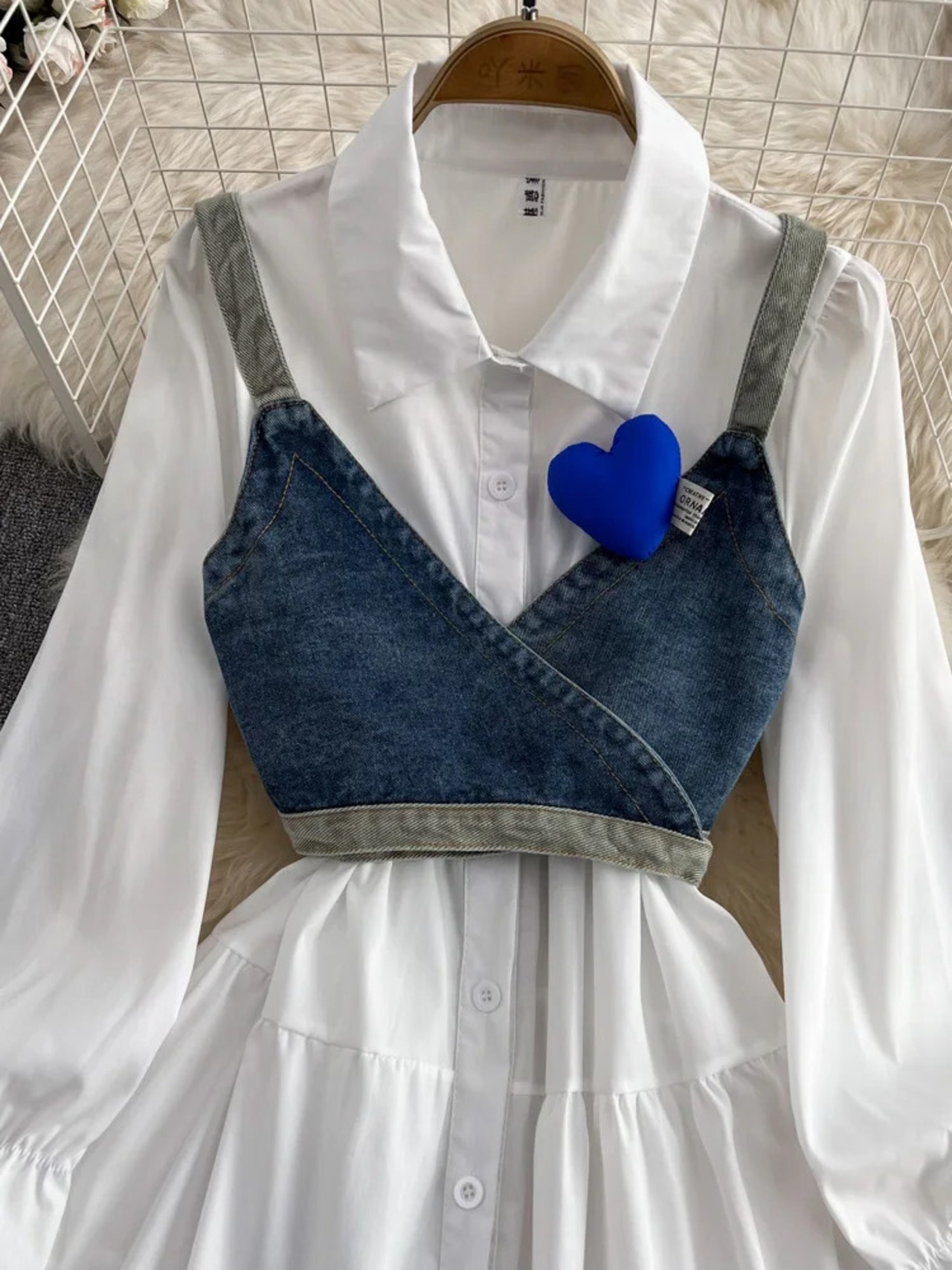 春秋カウボーイチョッキシャツドレス丈袖白シャツドレスチョッキ 2 点セット GD781 ホワイト スプリング 春物 オータム 秋物
